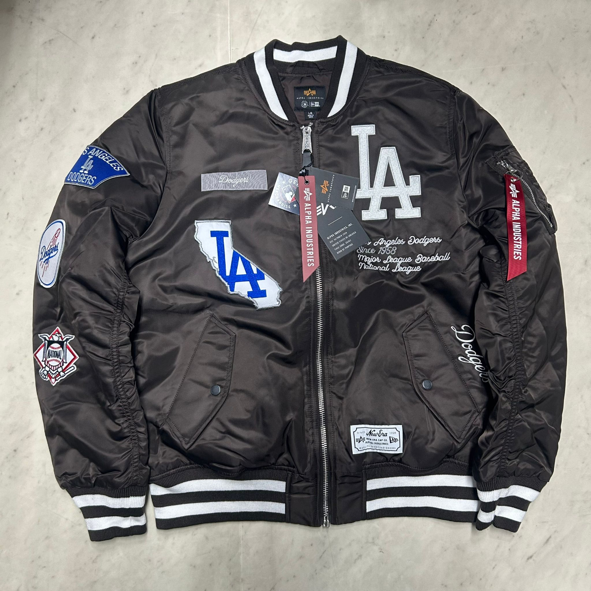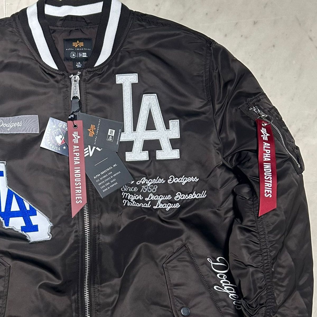 USA正規品 【M】 New Era ニューエラ Alpha Industries アルファインダストリーズ MLB LA ドジャース MA-1 ジャケット 茶 ブラウン