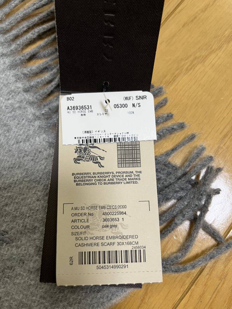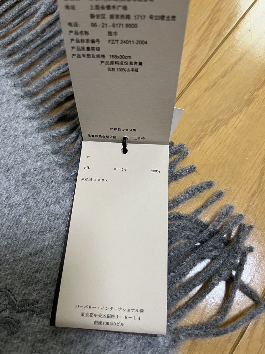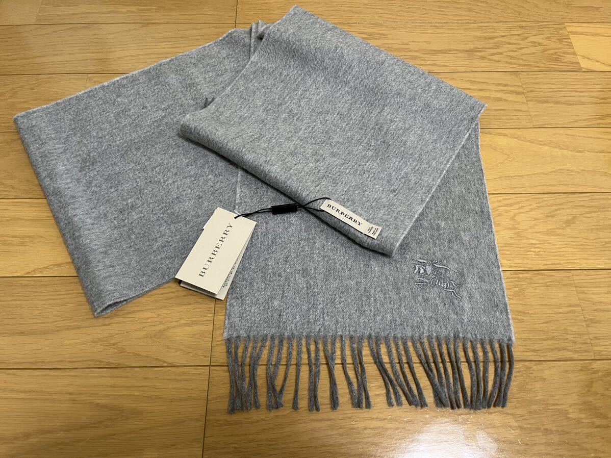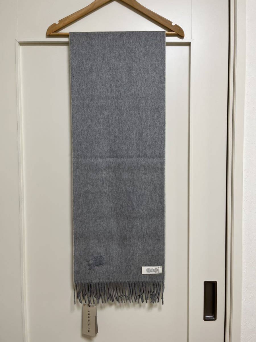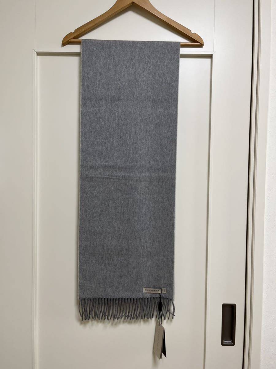 バーバリーカシミヤ100% マフラー パールグレー 無地