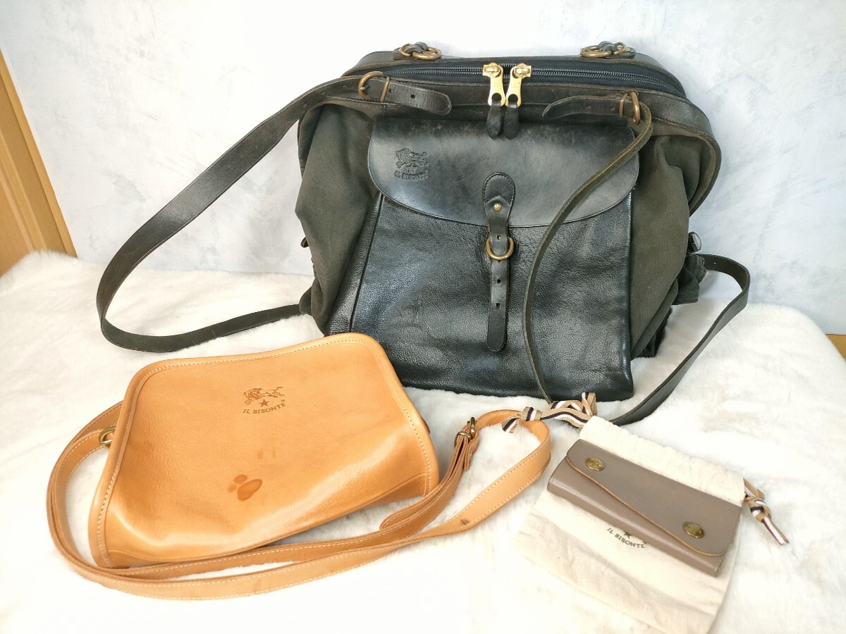 IL BISONTEイルビゾンテ レザーバッグ小物3点セット  リュック ショルダーバッグ キーケース  ヌメ革  キャンディ