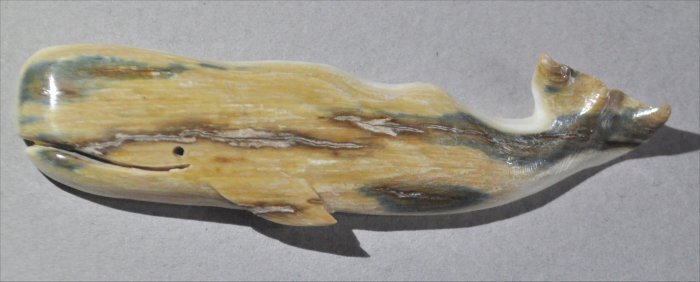 ナンタケットバスケット用のレアなマンモス牙の色変わりクジラオーナメント