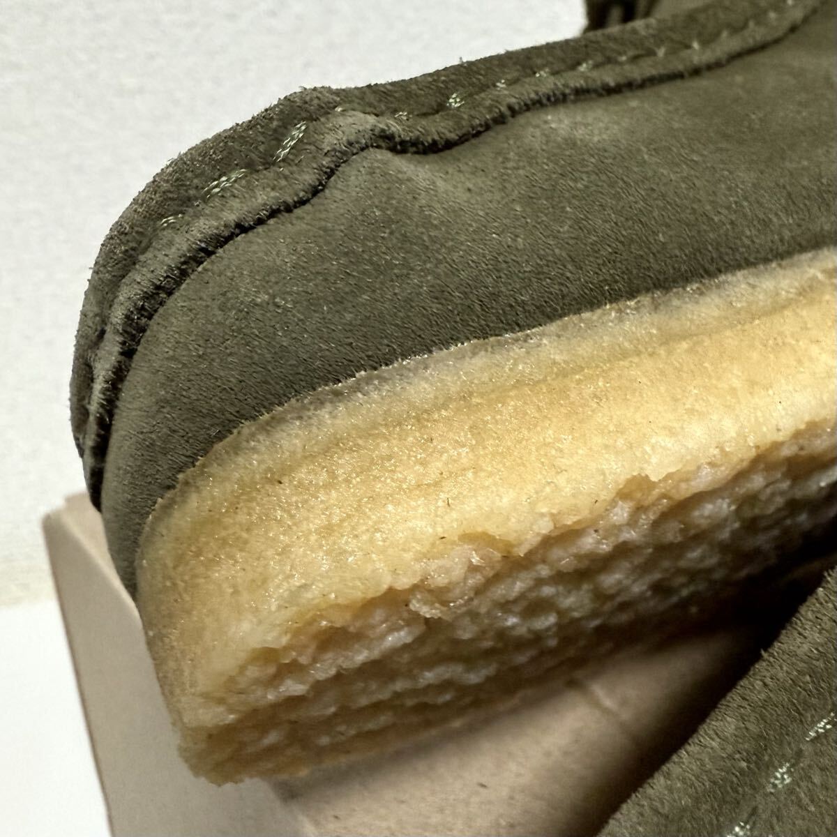 ■未使用品となりますが、室内にて試着はしています。経年によりソールに若干の硬化を感じます。また、右足トゥのモカシンインサイドあたりの一部にへこみ?ふくらみ?と思える型崩れの様な箇所があります。画像にてご確認下さい。