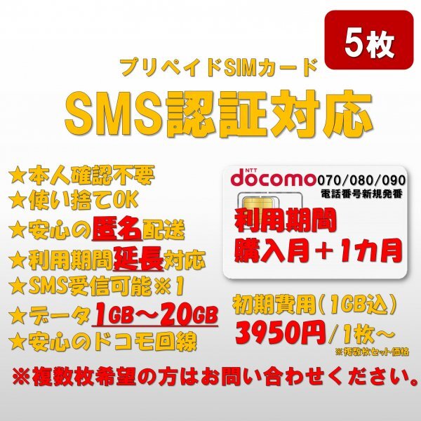 SMS付きデータSIMカード 5枚セット