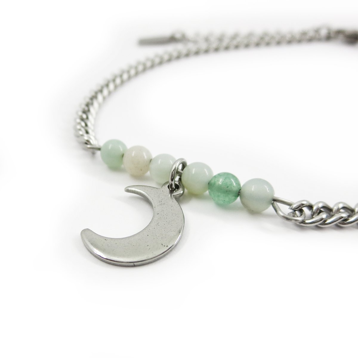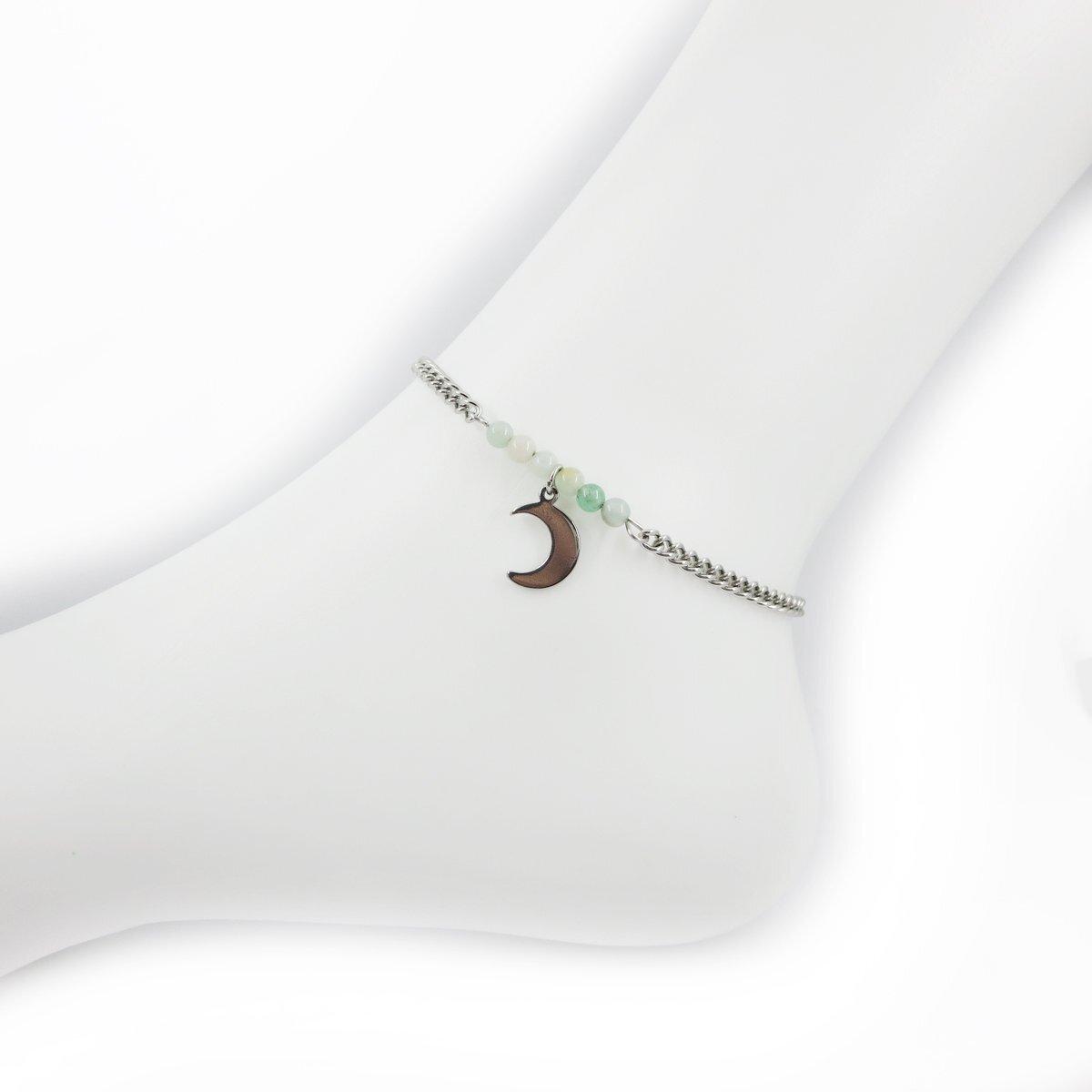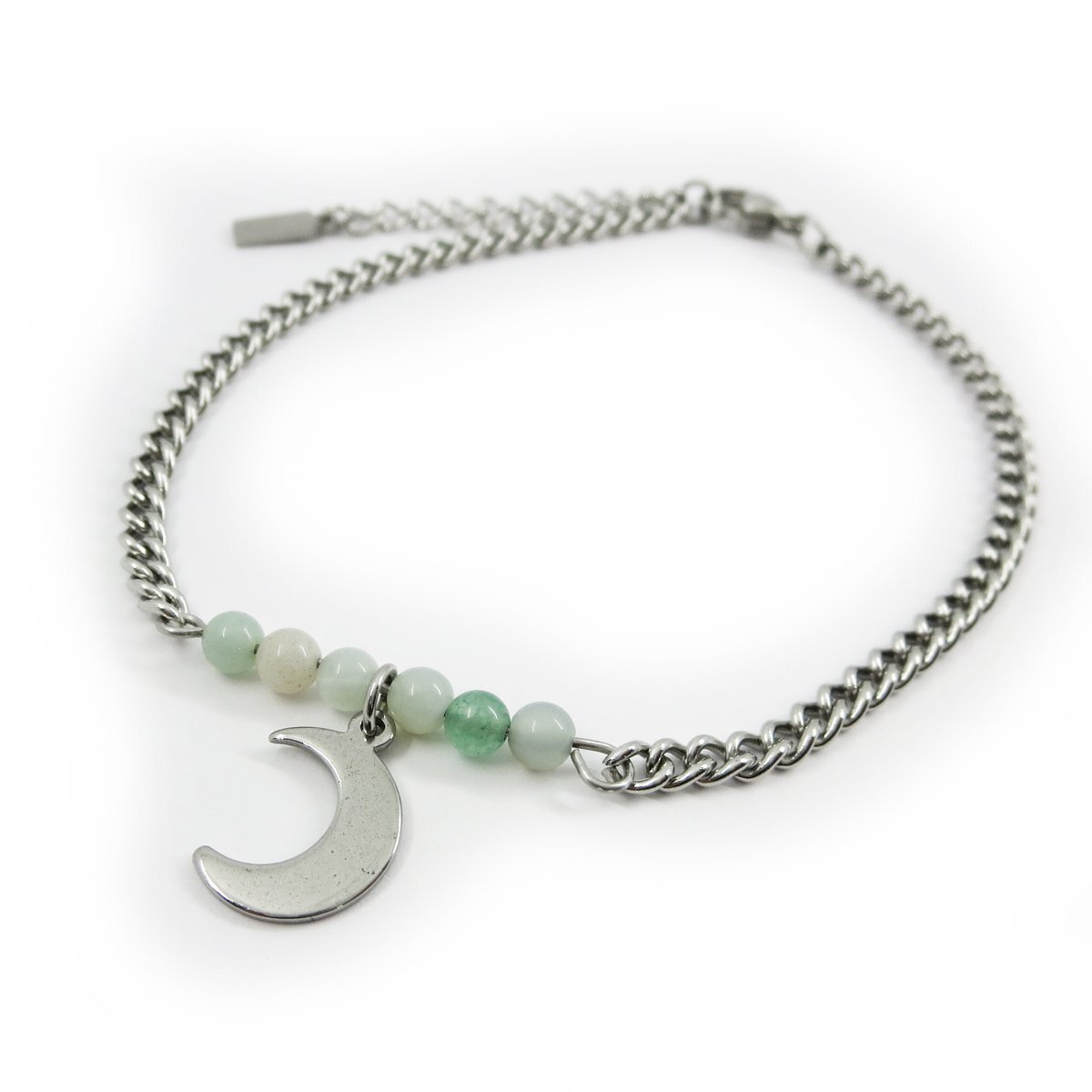 ステンレスアンクレット アマゾナイト約4.5mm ミニ鍵チャーム チェーン幅3.5mm  25cm(21cm+4cmアジャスター) GN10
