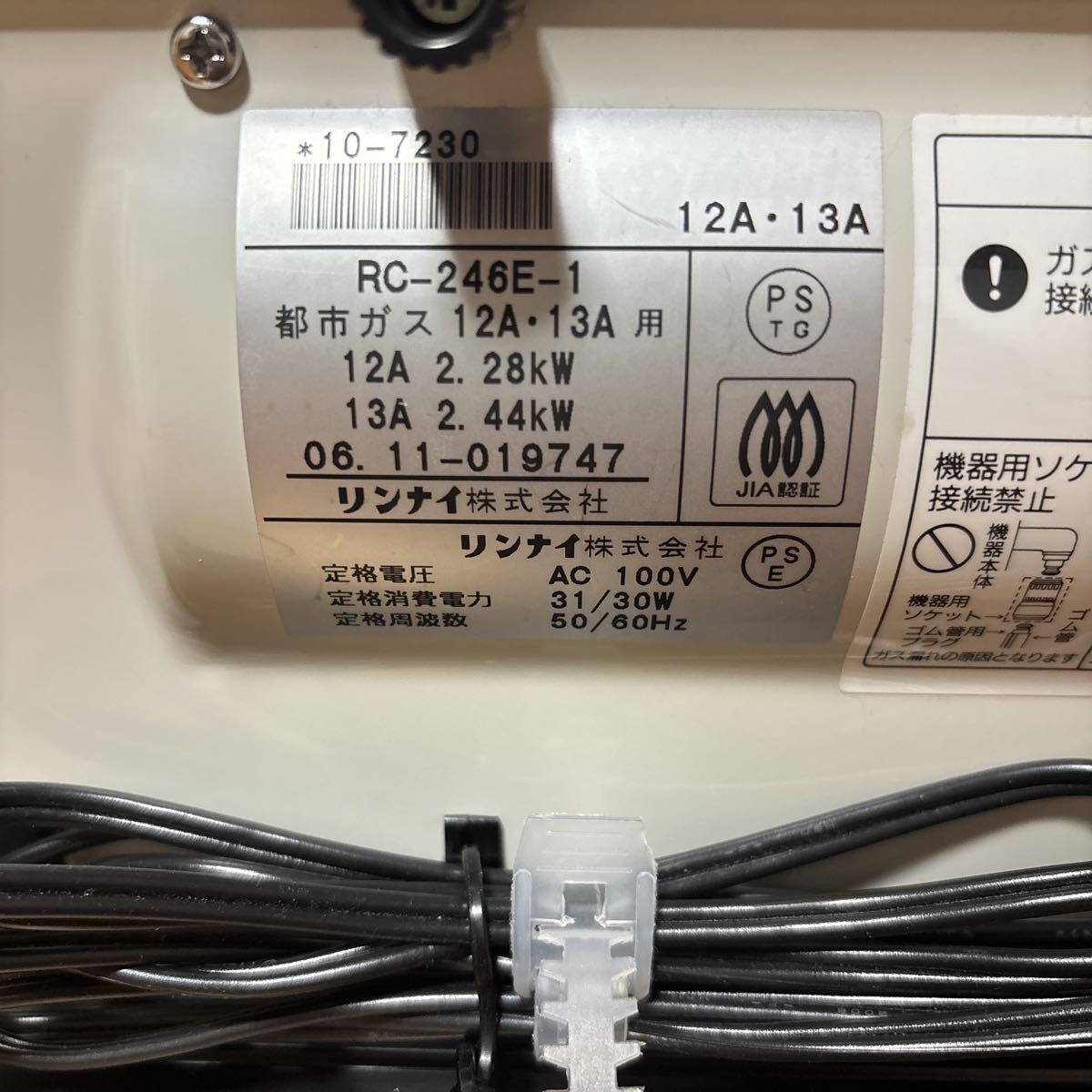 東邦ガス リンナイ RC-24FSA 都市ガス