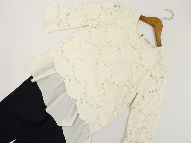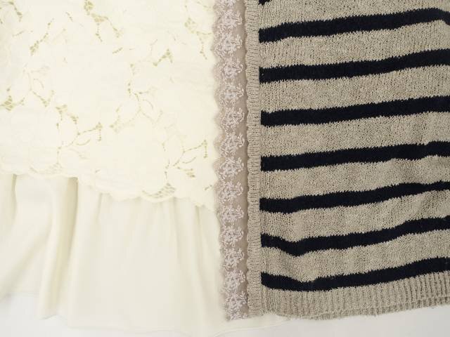 九分袖カットソー+半袖ニットカットソー+クロップドパンツ コーディネート上下3点セット M相当 アイボリー 花/グレー×ネイビー ボーダー柄/ネイビー フェミニン系 20代・30代