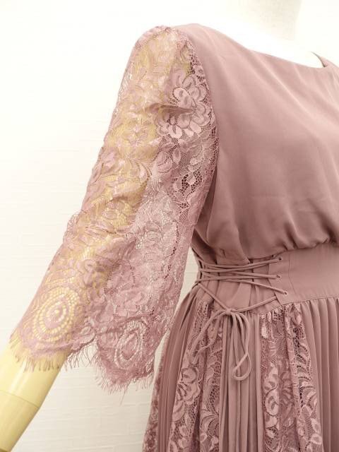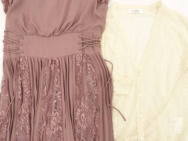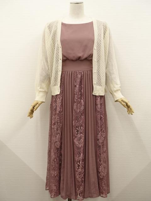 長袖ニットカーディガン七分袖ロング丈レースワンピース コーディネート2点セット LL相当 アイボリー/パープル系 総柄 フェミニン系 20代・30代