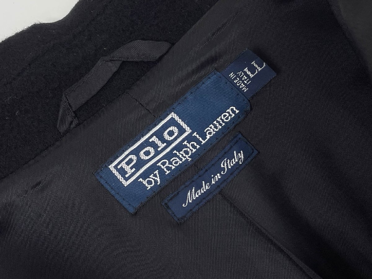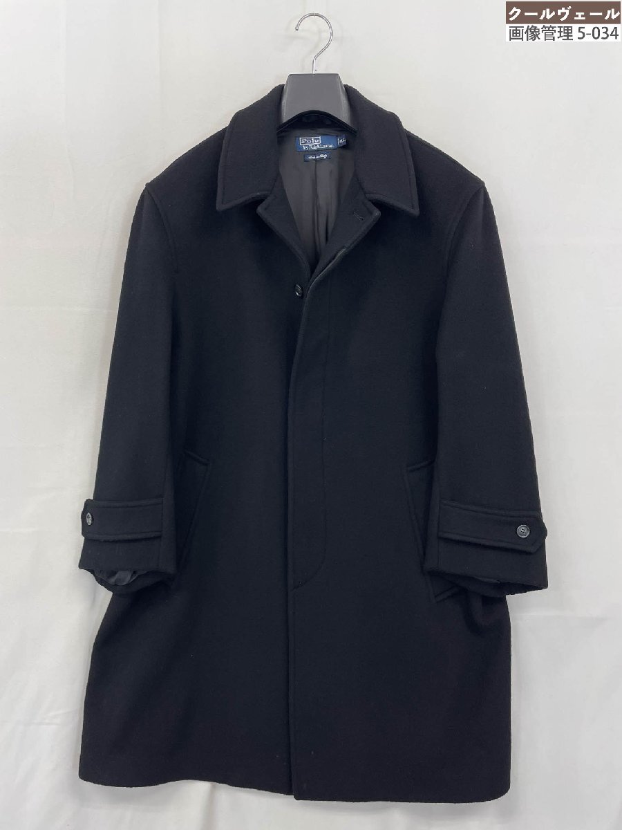 美品【ポロラルフローレン POLO Ralph Lauren】ウール 比翼ボタン ステンカラーコート (メンズ) LL ブラック 起毛感 伊製◇32MW4195