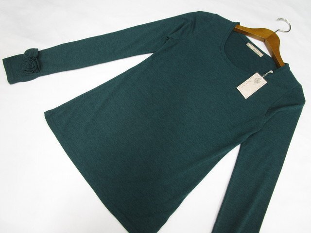 長袖 ラウンドネック ニットカットソー 02 グリーン杢