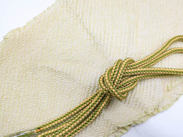 リサイクル商品のため、帯揚げにしぼのびとしみがございますが、ご使用頂けると存じます。 |