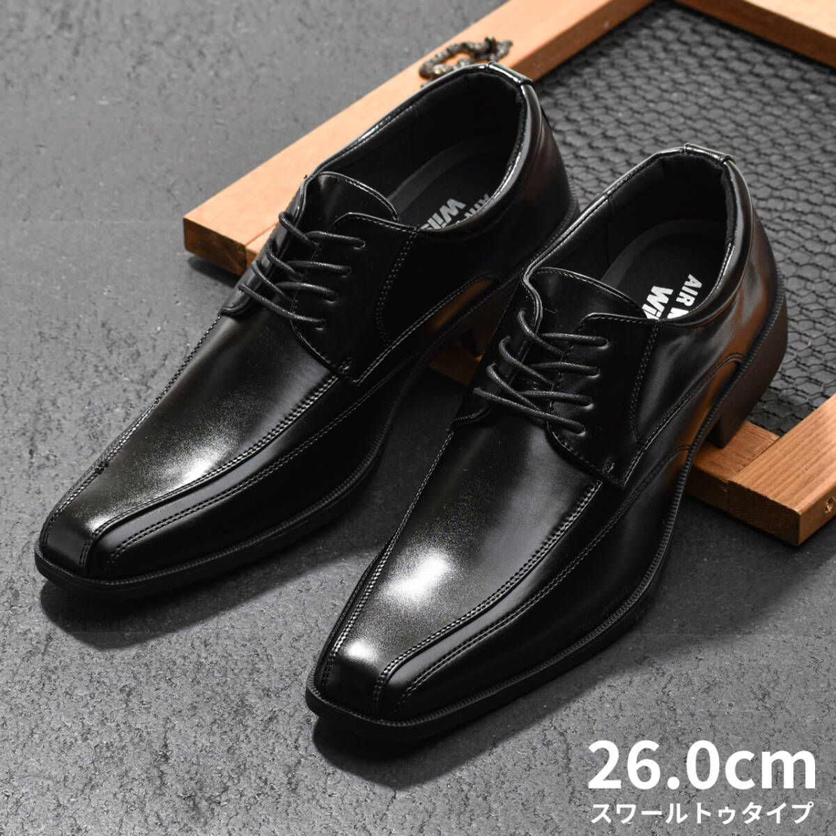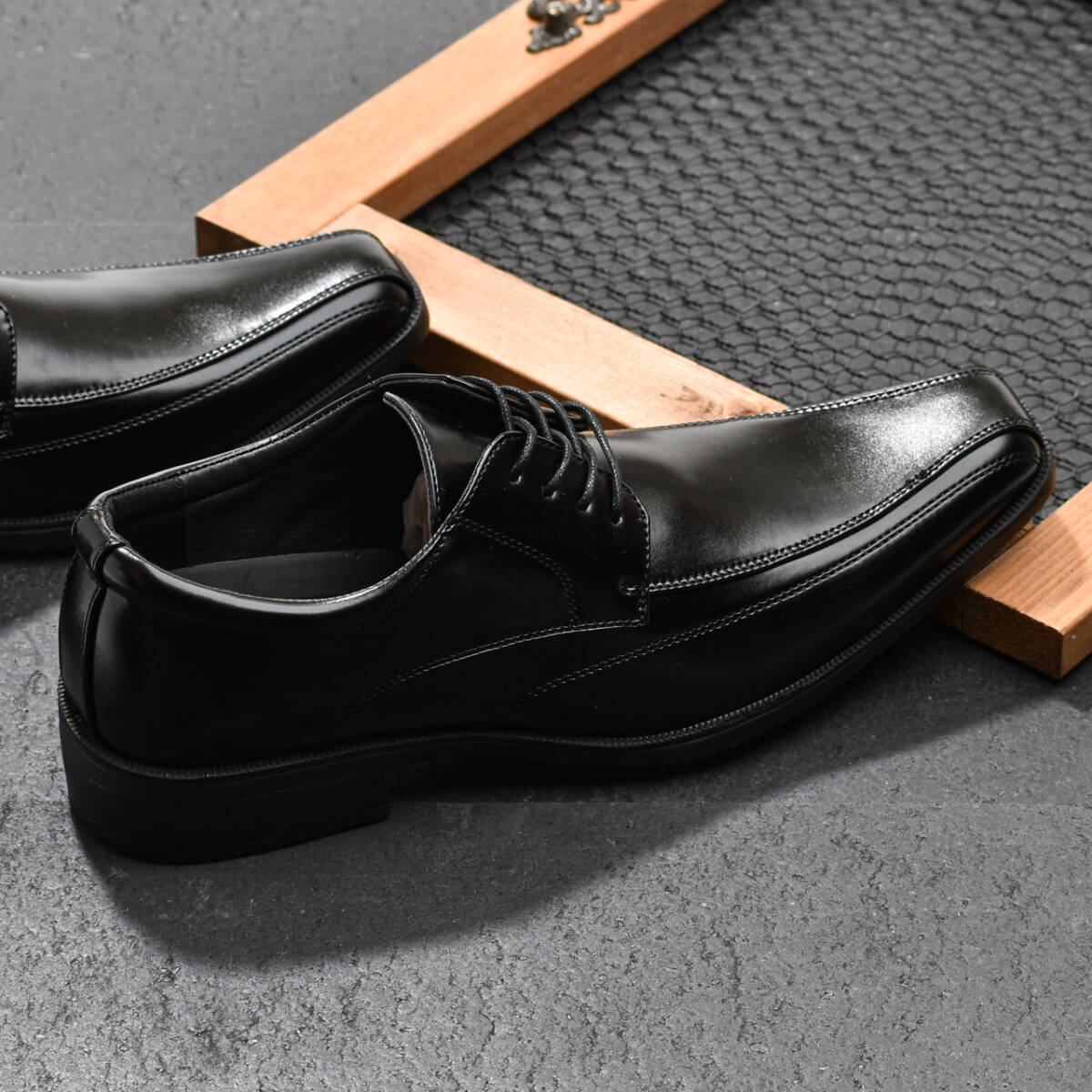 クッション性、軽量設計、適度な幅広設計、優れた屈曲性、撥水加工など機能的なメンズビジネスシューズ。