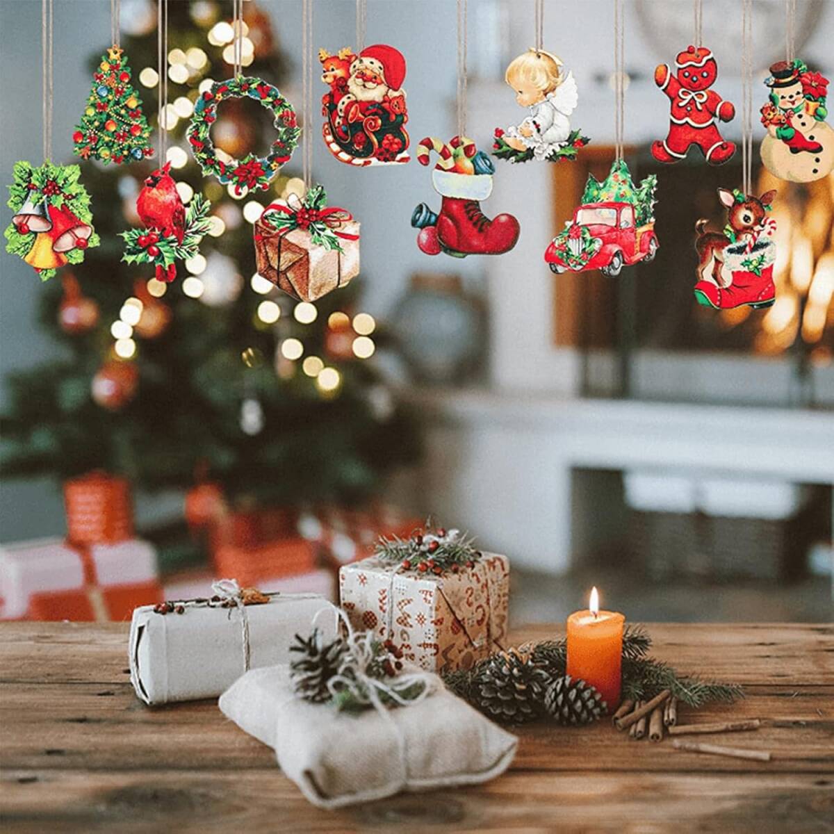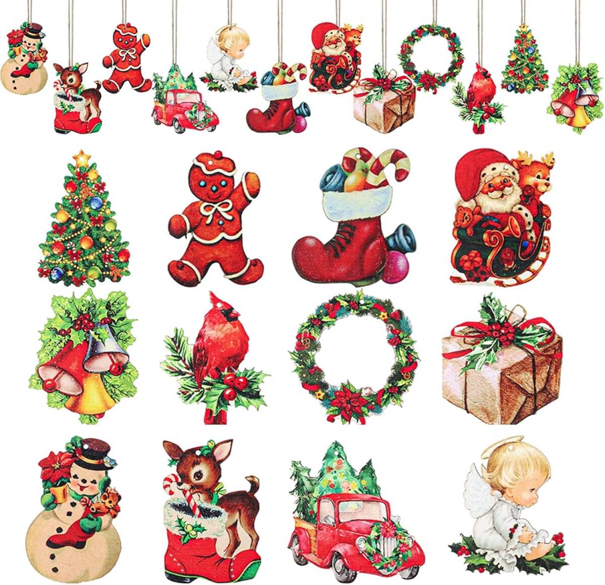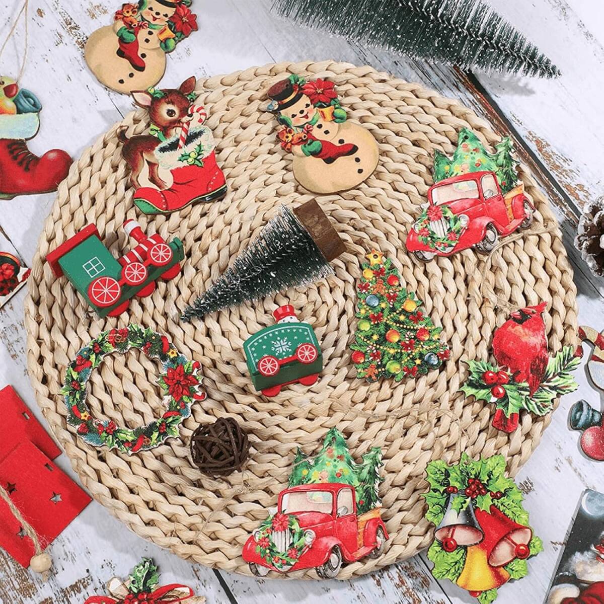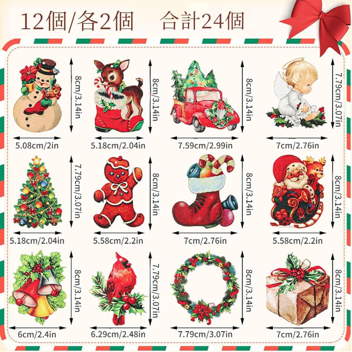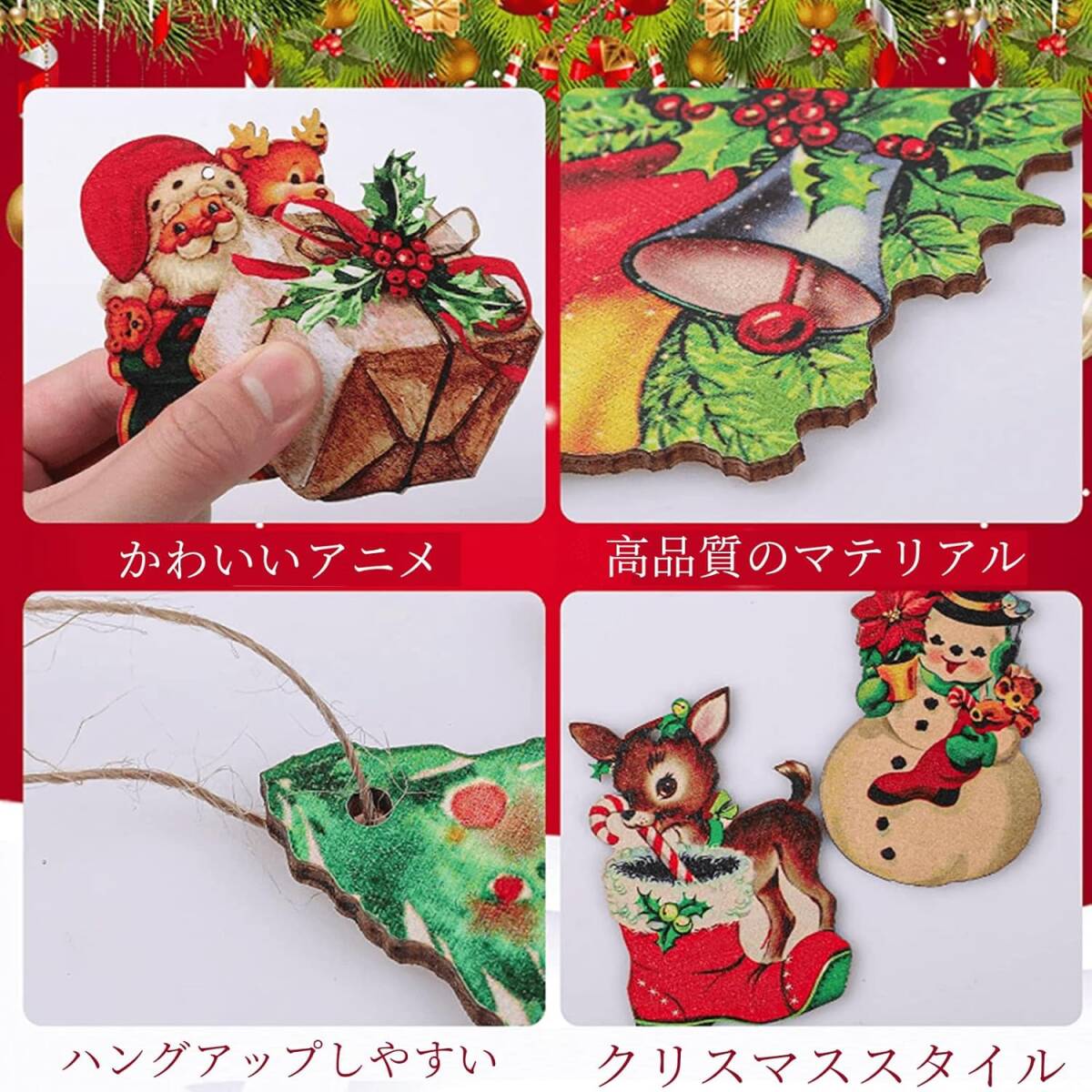 クリスマスツリー 木製 オーナメント【24個】木の装飾 クリスマス木製 飾り ツリー吊り サンタクロース