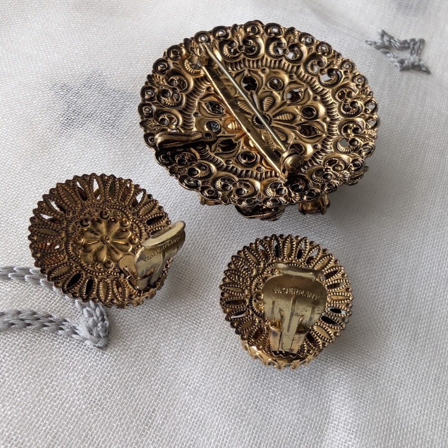 高い人気の西ドイツ製、1960〜80年代頃のイヤリングとブローチです。