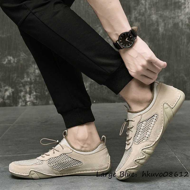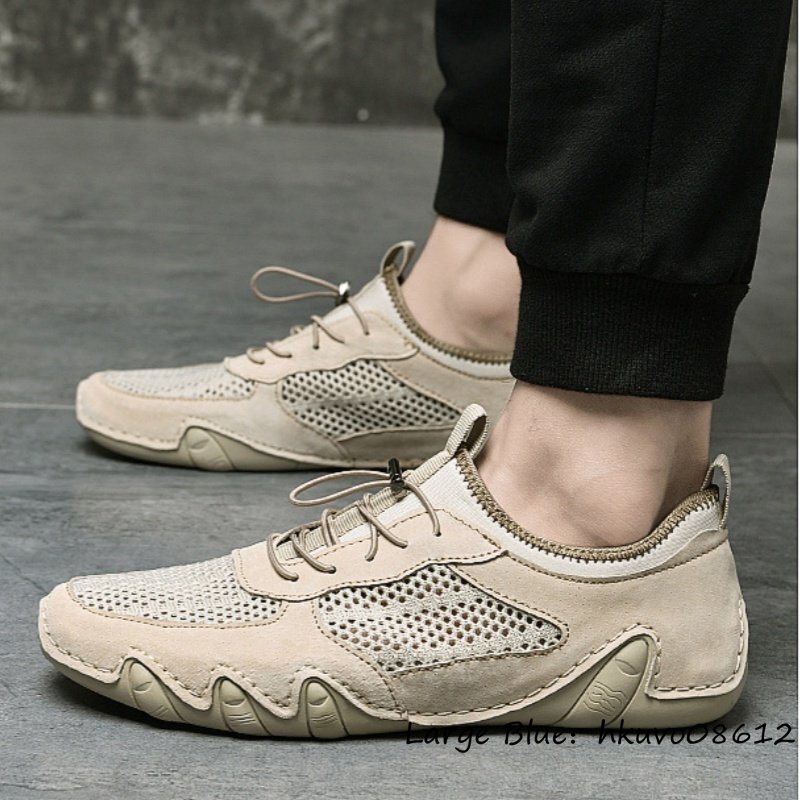 夏新品 ローファー スリッポン メンズ ドライビングシューズ 通気性 透かし彫り メッシュ 運動靴 スニーカー ウォーキング ベージュ 24.5cm