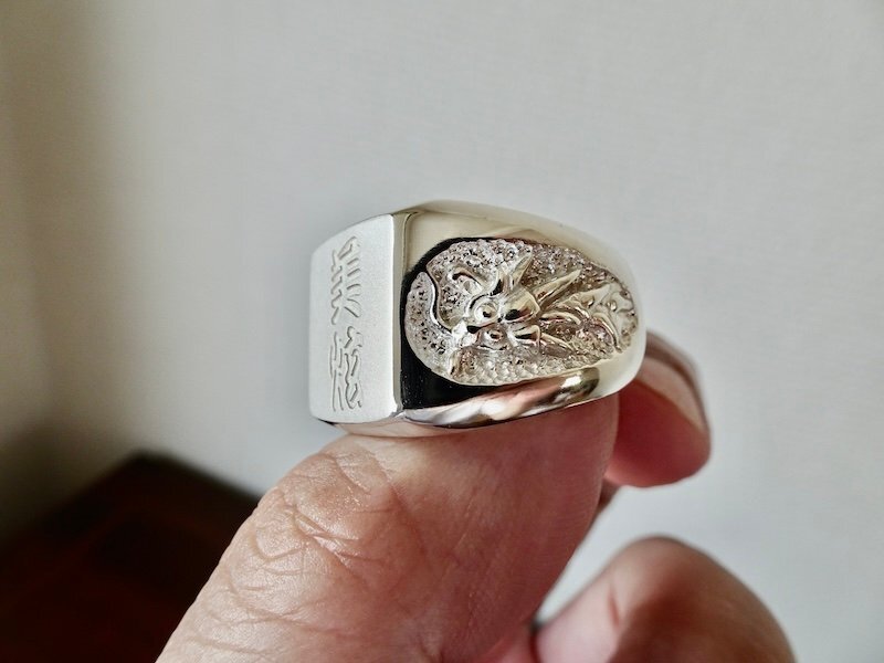 | ■ ■ 商品名: 『文字彫り、双龍印台リング』 ■ ■ |