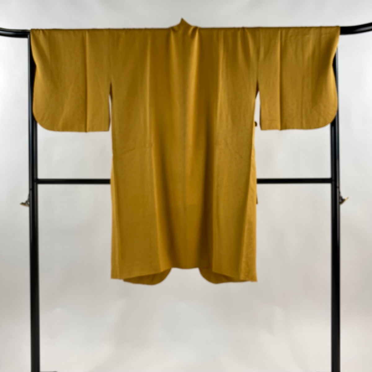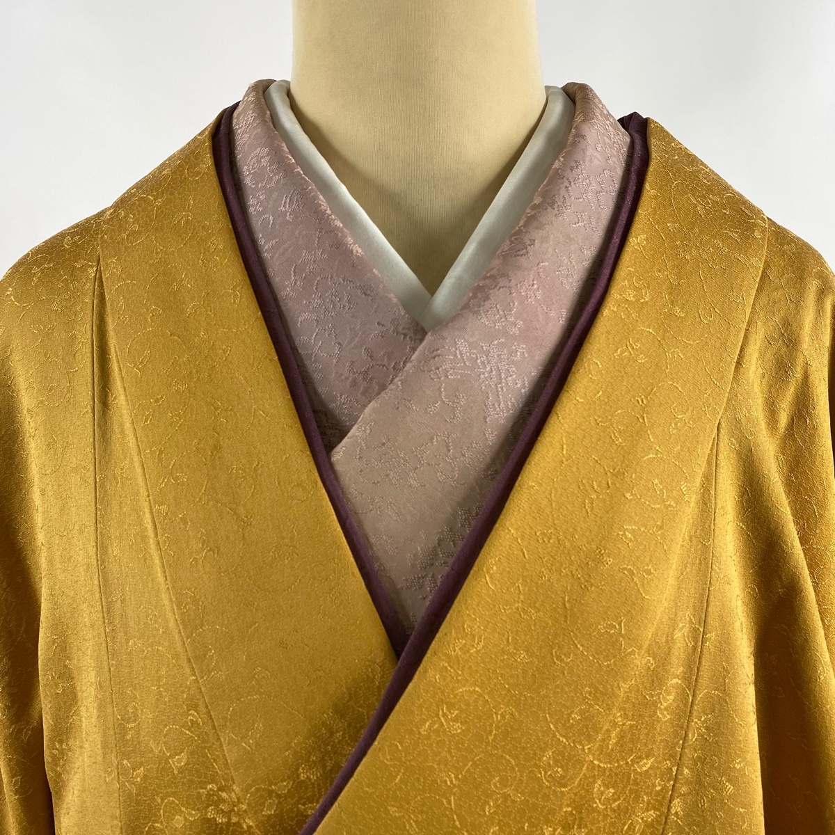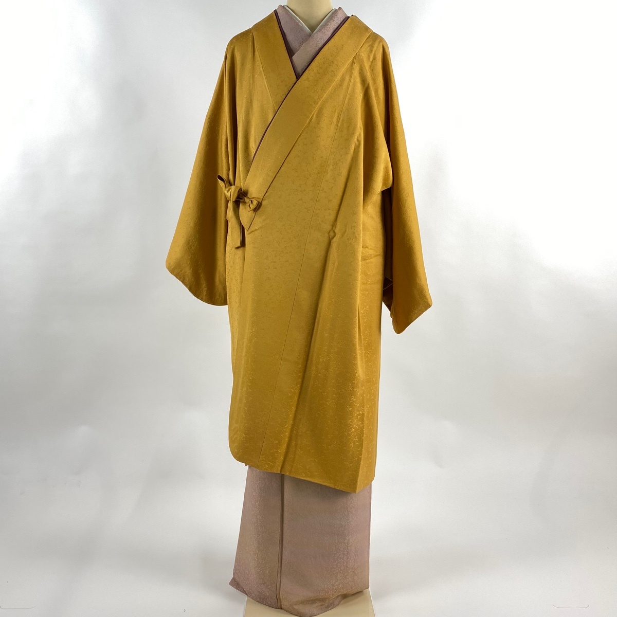 | 道中着 美品 秀品 和装コート 着物衿 地紋 山吹色 身丈107 裄丈68.5 L 正絹 【中古】 |