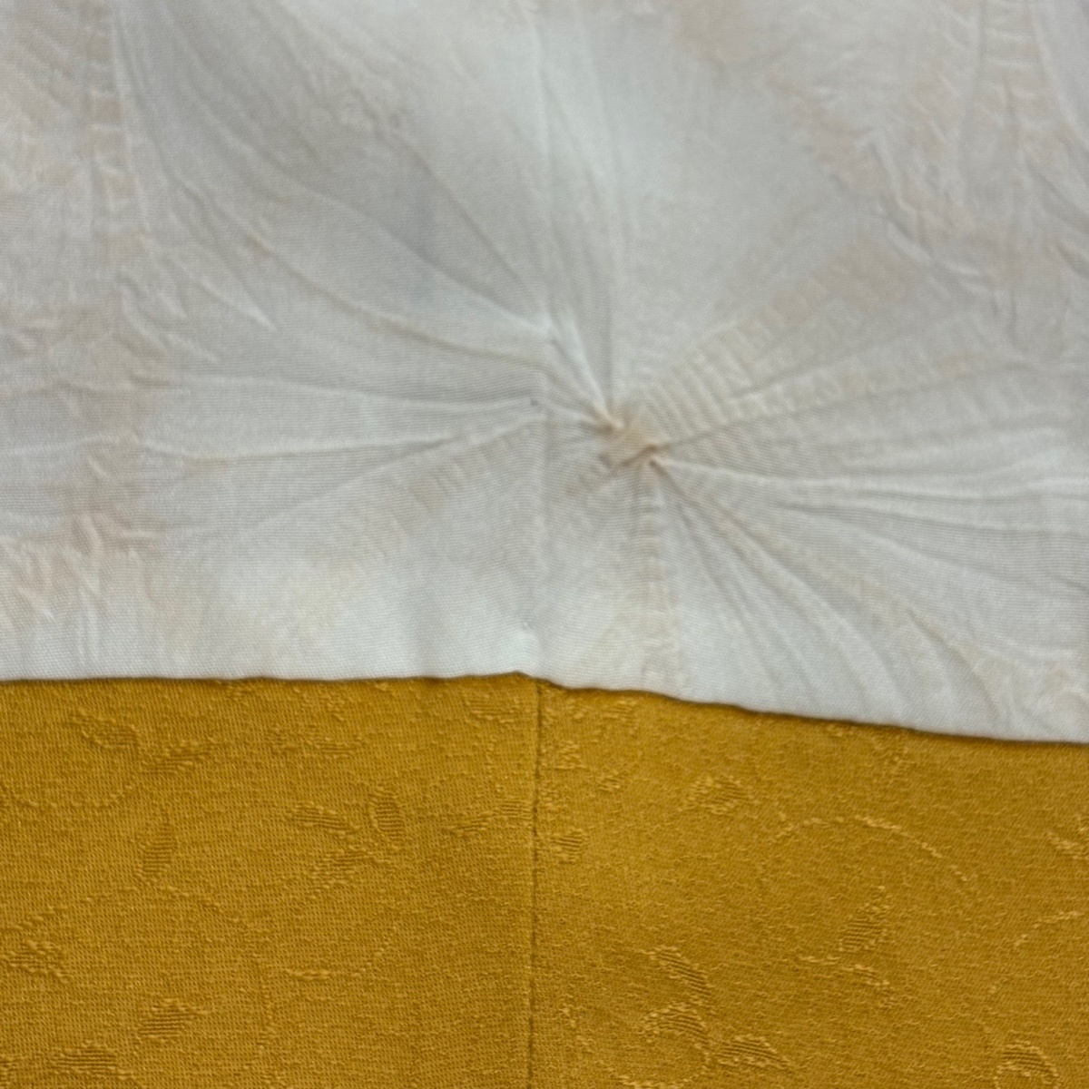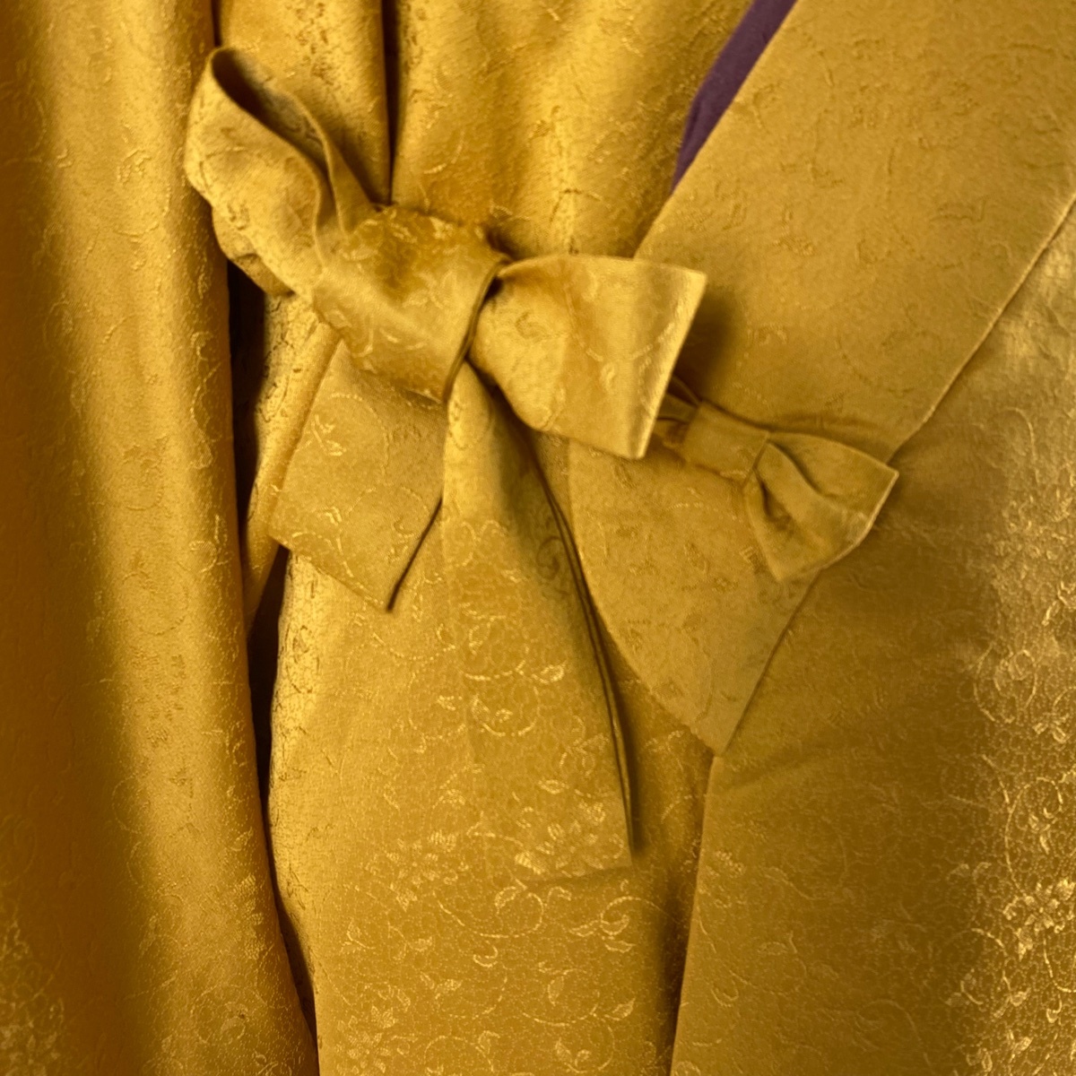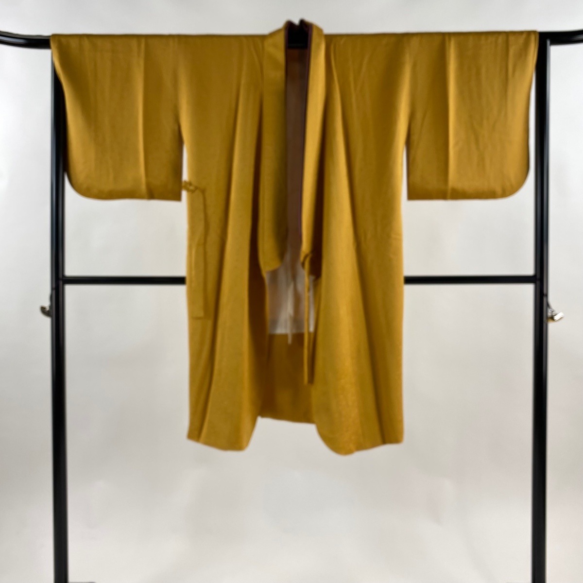 | 道中着 美品 秀品 和装コート 着物衿 地紋 山吹色 身丈107 裄丈68.5 L 正絹 【中古】 |