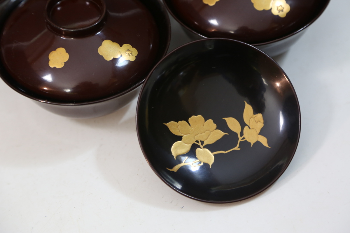 ★★★ アンティーク 明治期 木製 梅椿蒔絵 吸物椀 9客 ★★★ 72