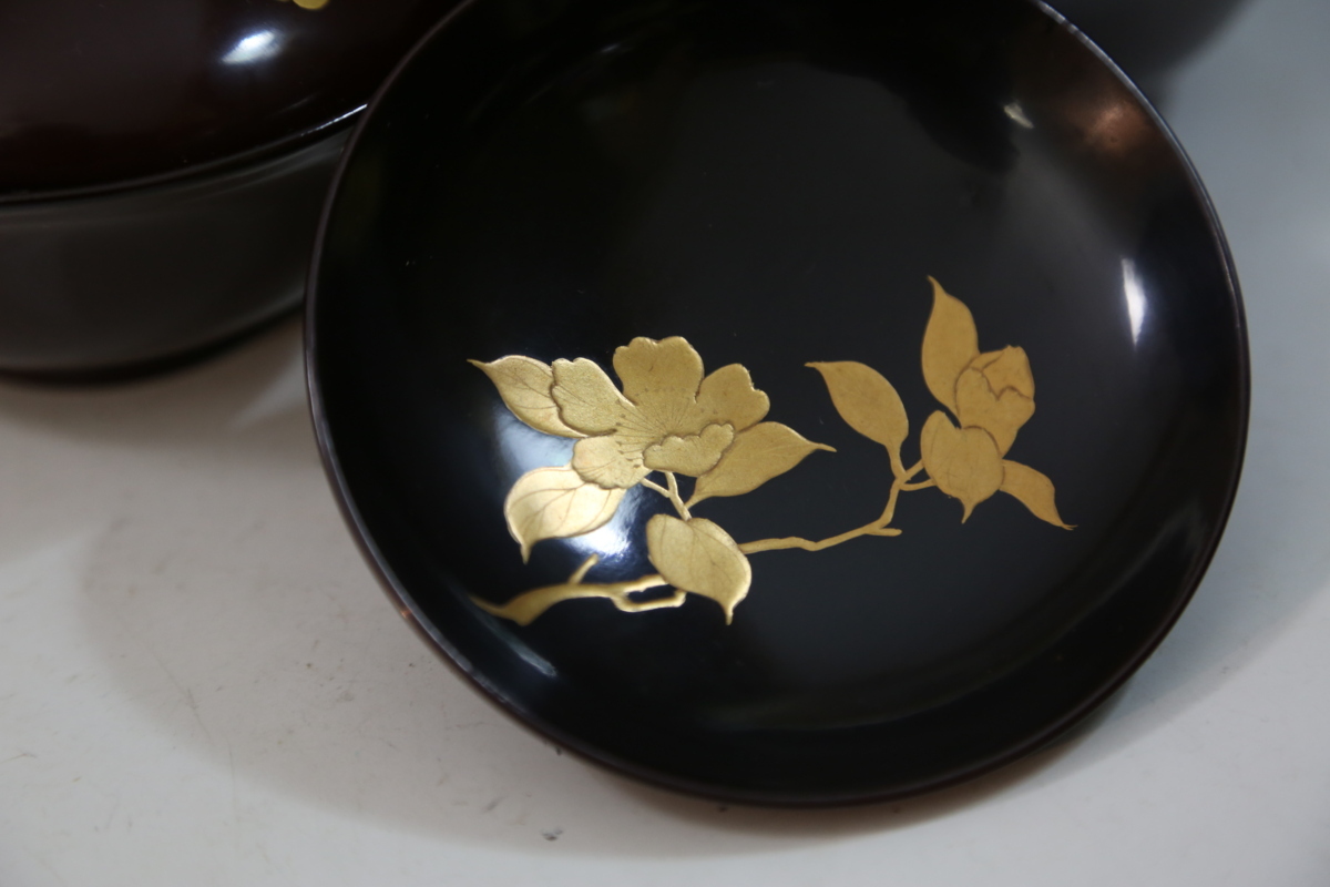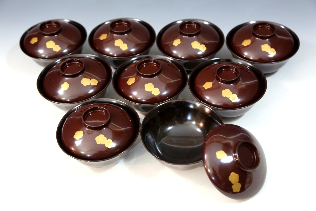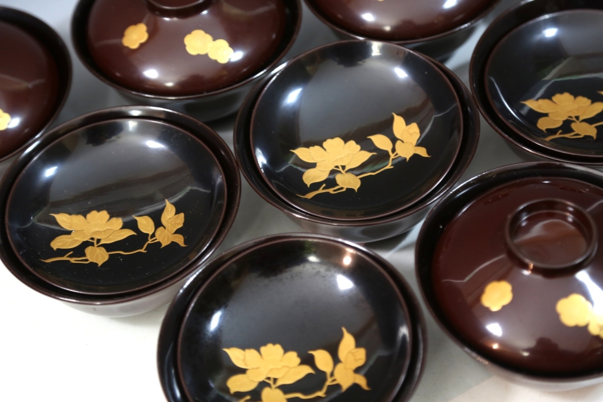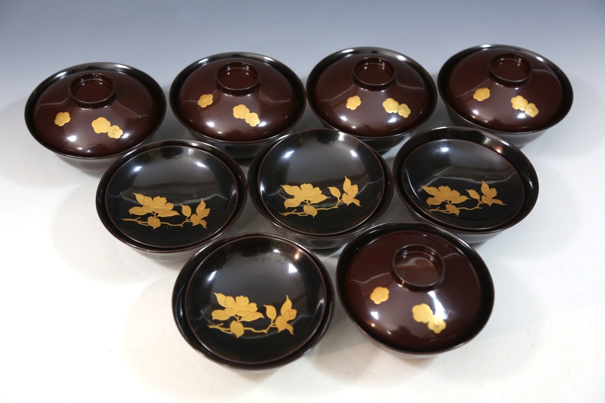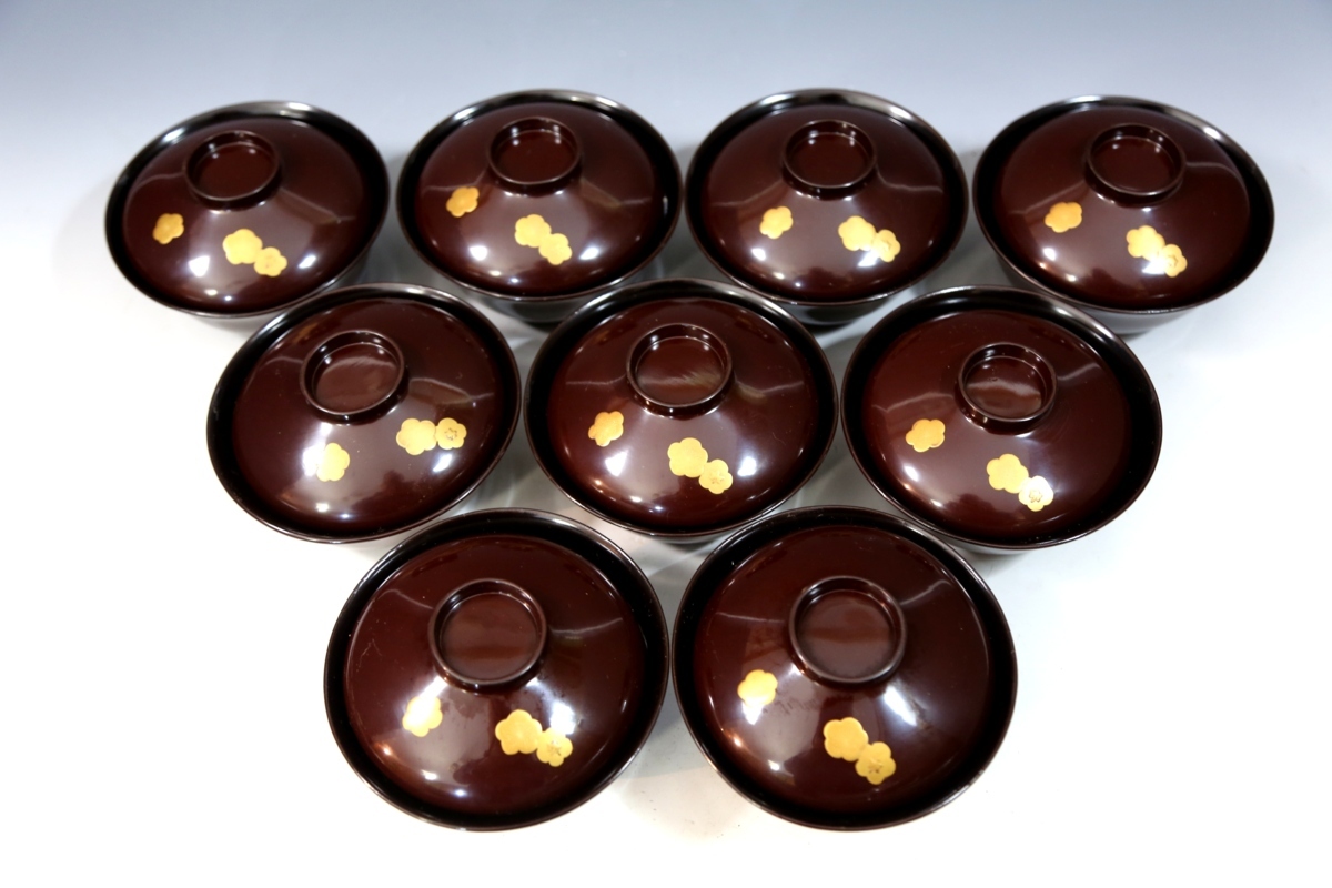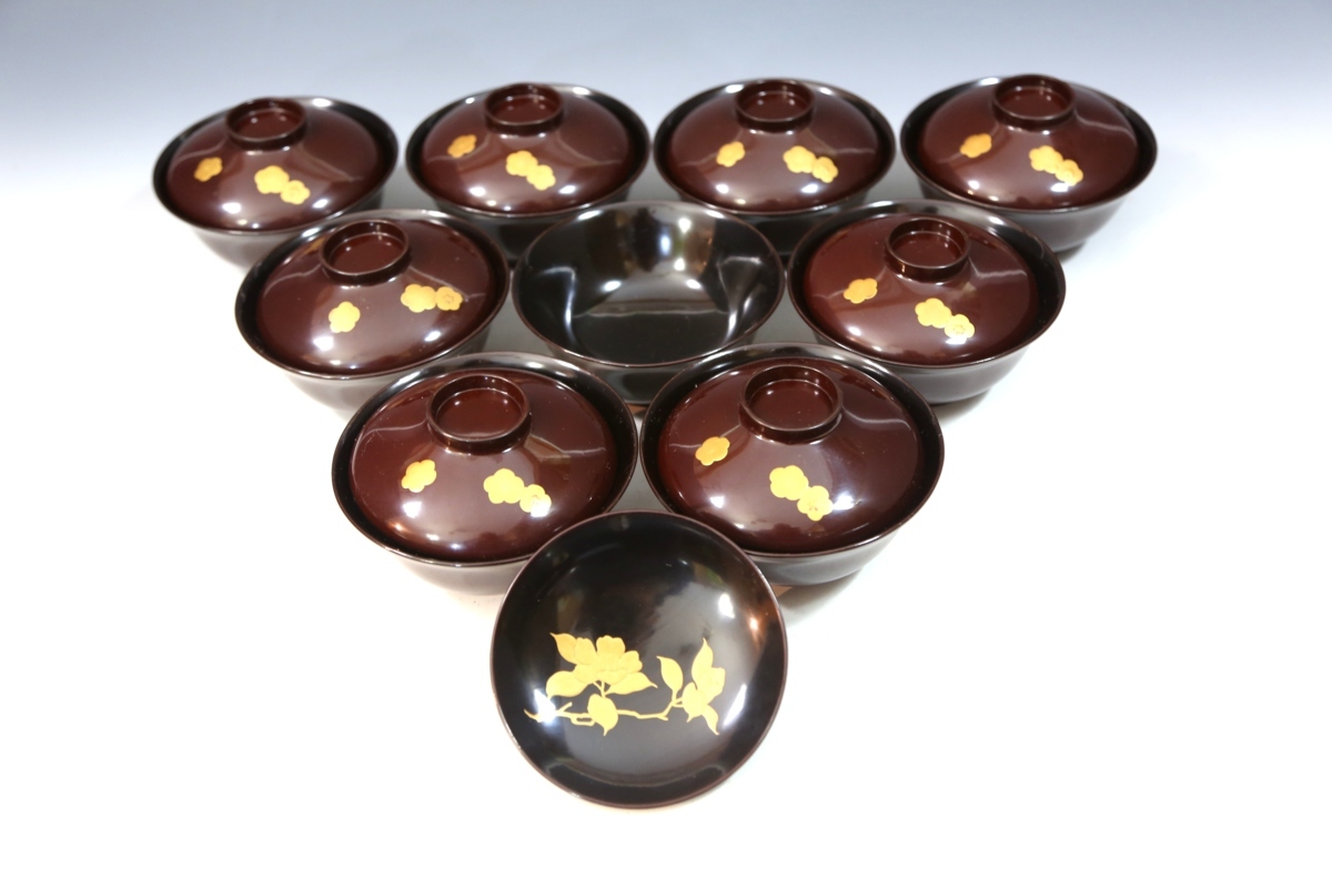 ★★★ アンティーク 明治期 木製 梅椿蒔絵 吸物椀 9客 ★★★