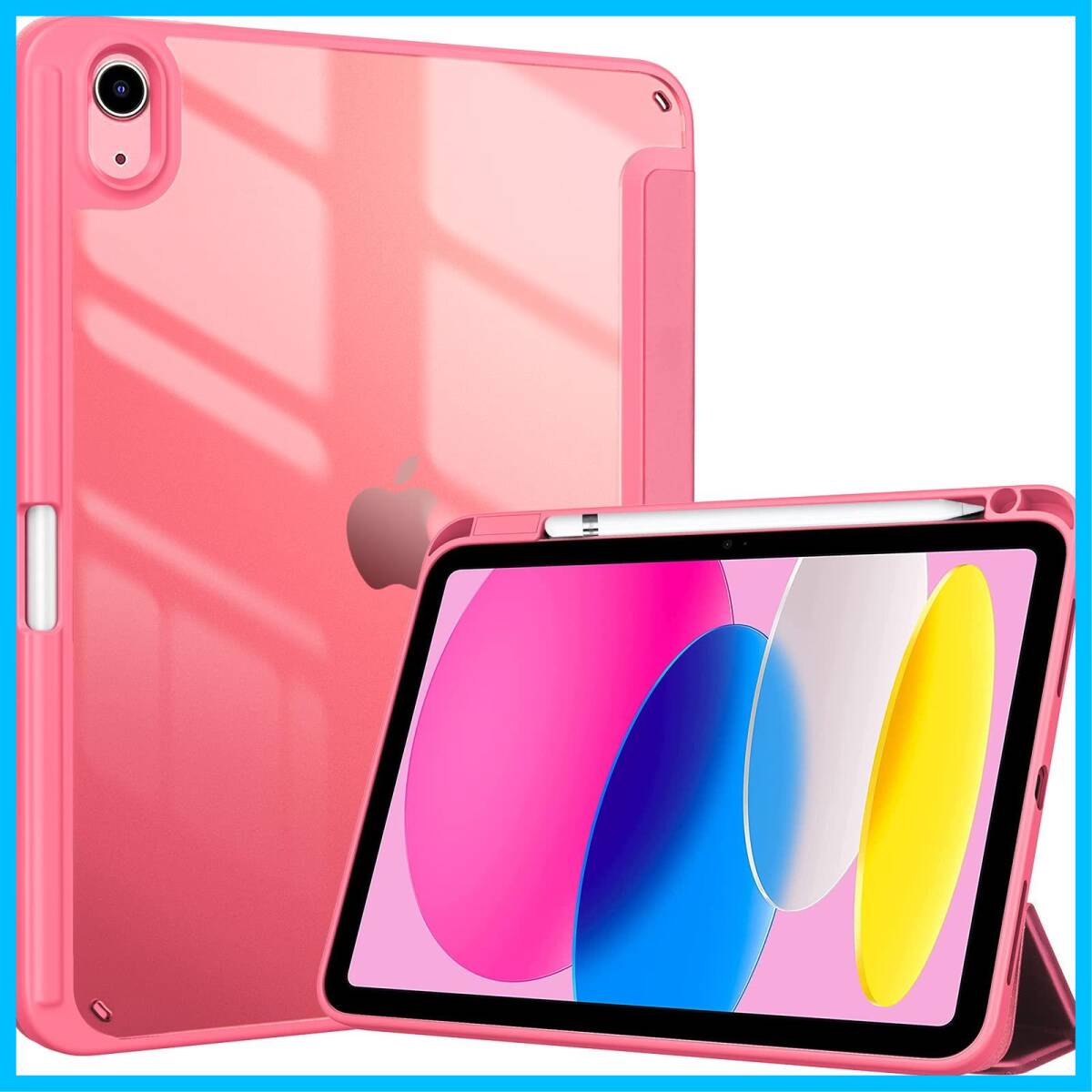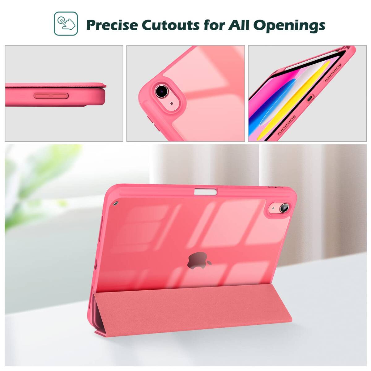 透明でつや消しのPCバックカバーはアイコンを表示し、iPadを衝撃、指紋、引っかき傷から保護します。内蔵したマグネットにより、オートスリープ/ウェイクに対応します。