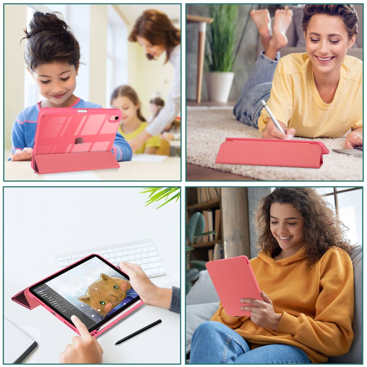 ProCase iPad 11世代/10世代 ケース iPad(A16)11インチ 2025/10.9インチ 2022通用 A2696 A2757 A2777 ペン収納 耐衝撃 三つ折り スタンド スマートカバー(ピンク)
