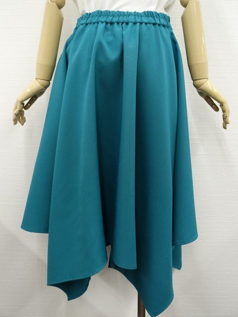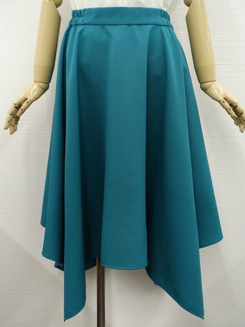 ひざ丈 洗えるヘムスカート F ターコイズグリーン