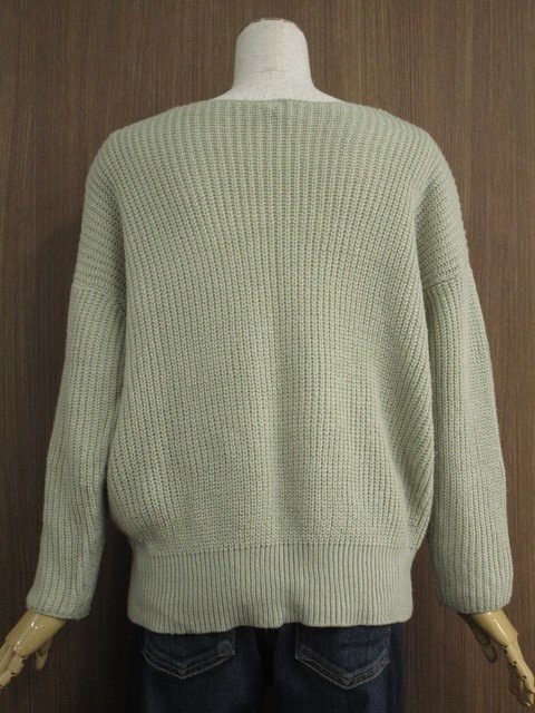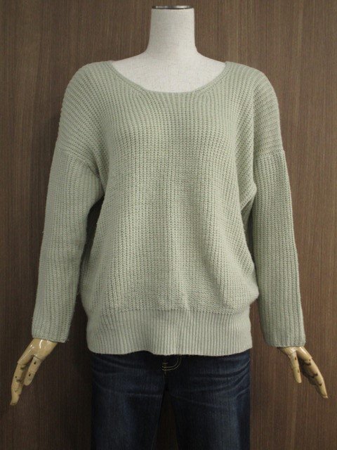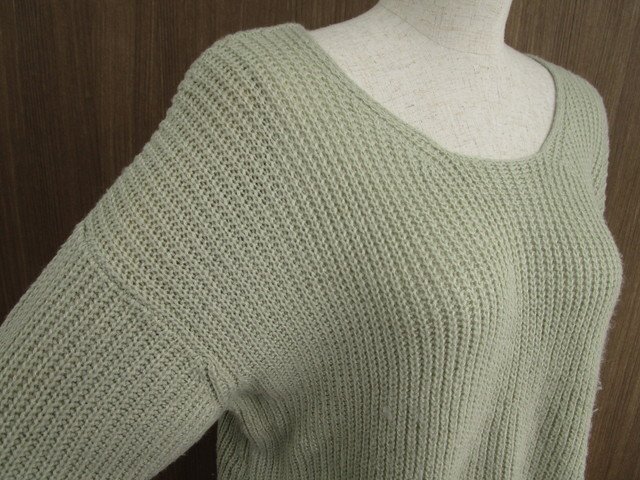 ドロップショルダー 長袖 ラウンドネック 洗えるニットセーター F グリーン系