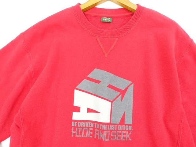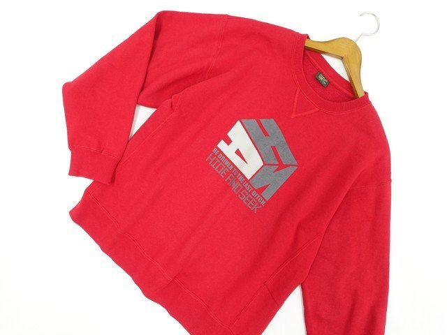 長袖 ラウンドネック トレーナー L レッド地 グレー×ライトグレー 英字プリント