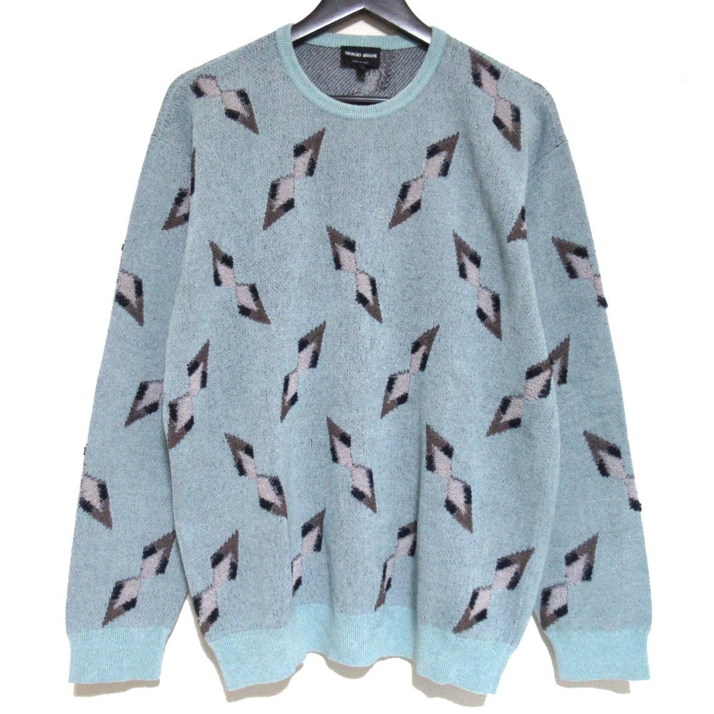 商品名:23SS GIORGIO ARMANI ジョルジオアルマーニ ジャガード 総柄 長袖 クルーネック ニット セーター サイズ50 ライトブルー