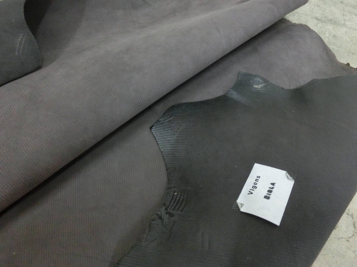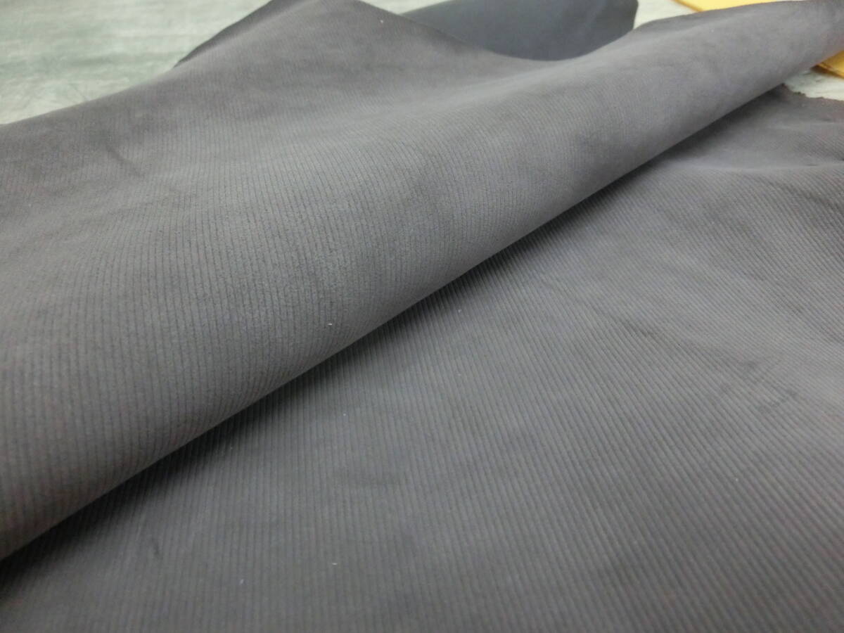 Q30 くすみチョコ 濃茶 ストライプ型押し インポート革シール有 26デシ ソフトあまり伸び無し硬くない スエード起毛