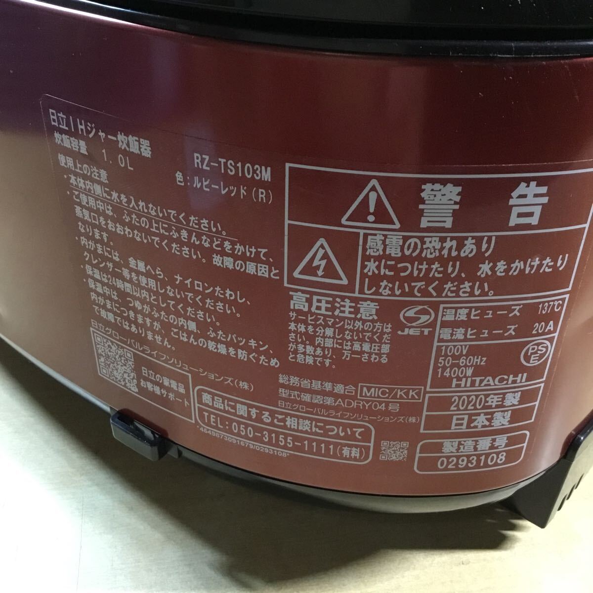 ※ 水を入れて[高速または早だき炊飯]と[保温]の動作を確認しました。