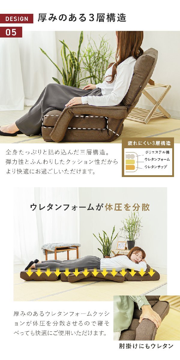 | 肘掛け付きで体に優しくフィットし、背もたれは14段階の角度調節が可能となっており 背もたれを倒して座面を広げてフルフラットな状態にするとソファーベッドにもなります★ 16個のコイルが体圧を上手に分散し、体への負担を軽減してくれます。 大事な内部ギアは、世界でも活躍する実績ある日本メーカー「KoYo」の日本製! 折り畳み可能で、収納や持ち運びがとても便利です。 通気性の良いファブリック素材なので1年中お使い頂けます! 【商品仕様】 カラー:ダークブラウン 外寸サイズ:(約)幅68x奥行68x高さ70cm フラット時(ベッド)サイズ:(約)165cm 座面厚み:(約)最大24cm 収納時サイズ:(約)幅68x奥行57x高さ32cm 重量:(約)7kg 素材:麻リネン布、ウレタンスポンジ、鋼管 【注意事項】 ・この商品はカバーリングではありません。(洗濯不可) ・生産ロッドが違う場合、柄/色味が若干変わってくる場合がございます。 ・商品を使用して発生した事故/トラブル/破損等につきましては一切の責任を負いかねます。 |