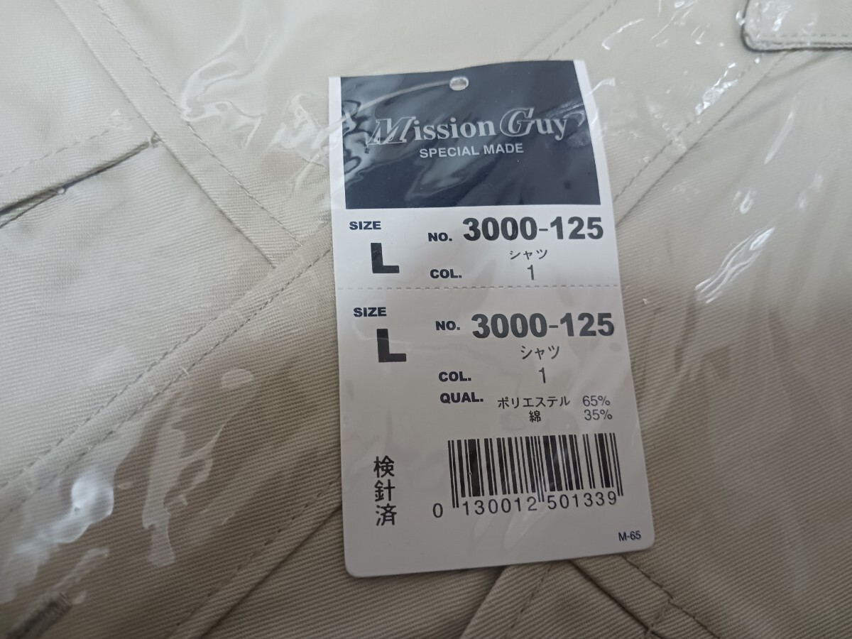 5762 Mission Guy 3000-125|長袖シャツ|ベージュ|Lサイズ|新品未使用|綿ポリ混紡|厚手 秋冬オールシーズン通年 春夏|作業シャツ|作業服