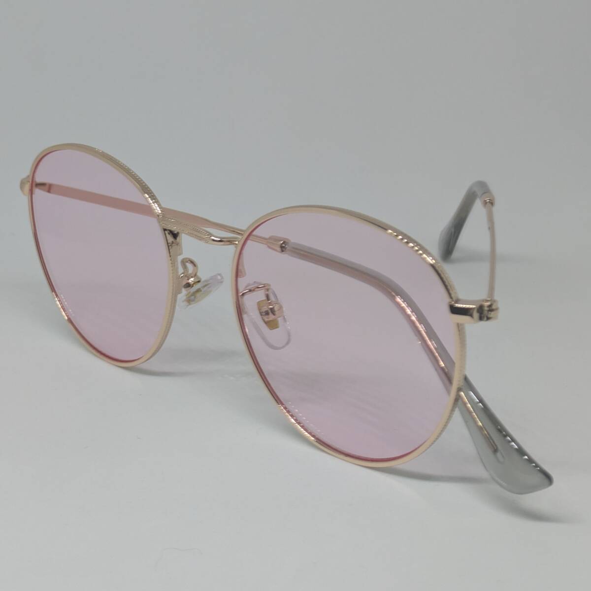 ラウンドメタル UV サングラス ゴールド メタルフレーム ライトピンク 金縁 ボストン 伊達メガネ メンズ レディース