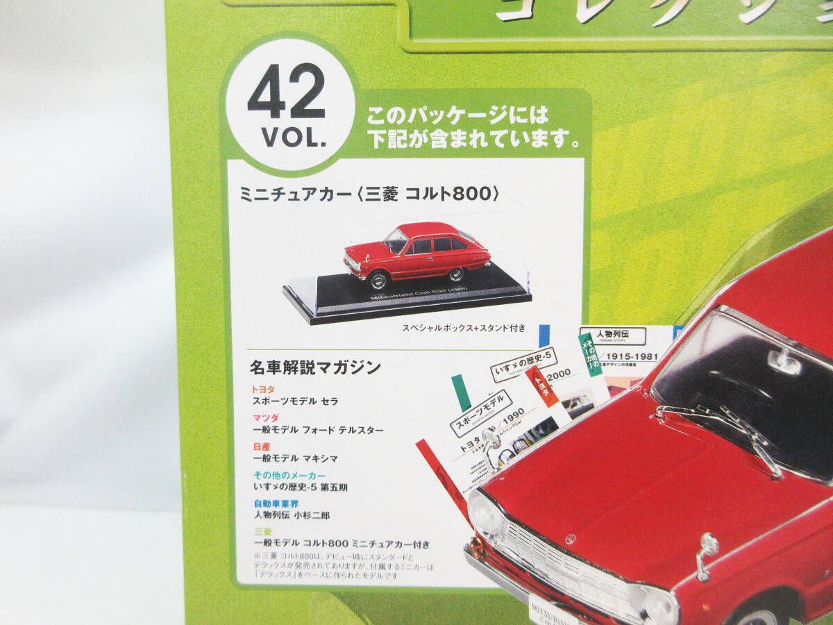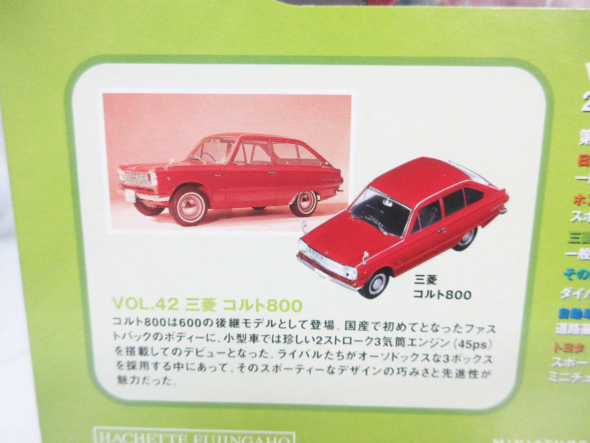 F1349【ミニチュアカー】アシェット 国産名車コレクション Vol.42 三菱 コルト 800 レッド 1/43★ケース 名車解説マガジン 付属★未開封
