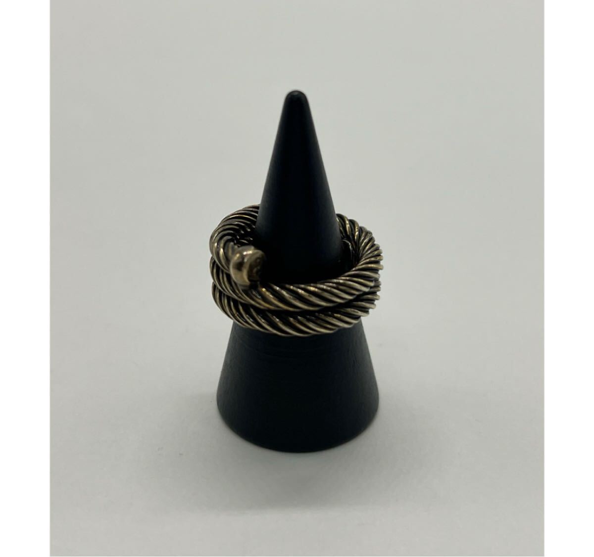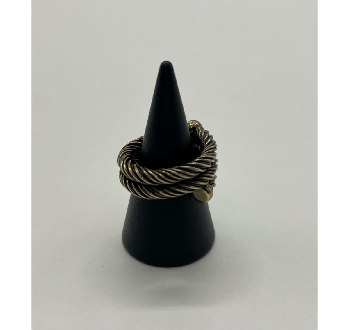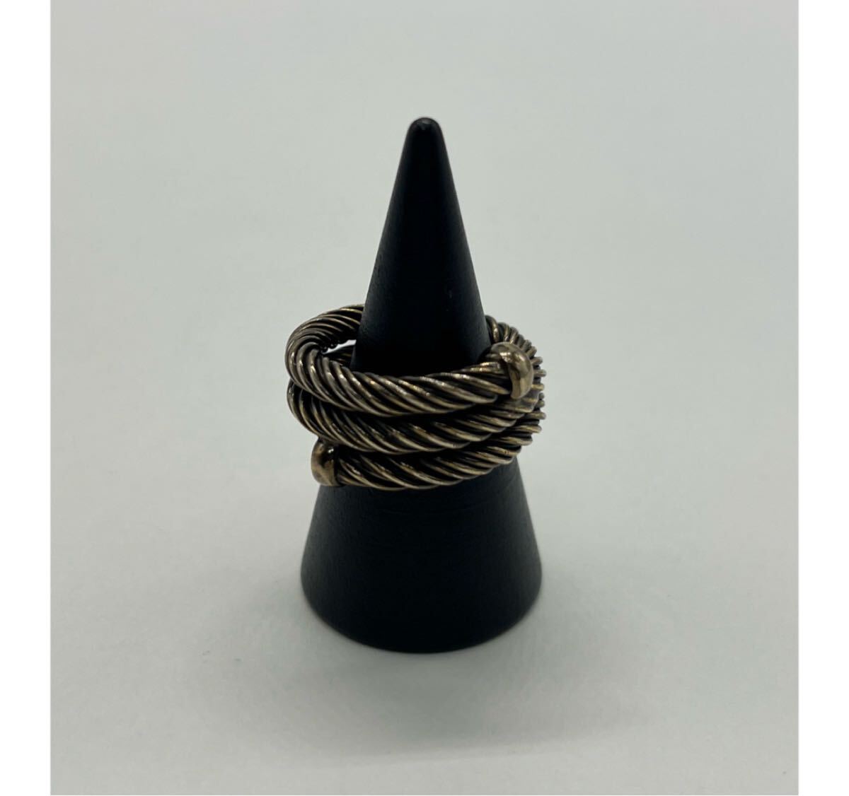 ツイストされたデザインが指に巻き付くように螺旋状のボリュームのあるリングになっており、着用時に存在感を放つお品物でございます。