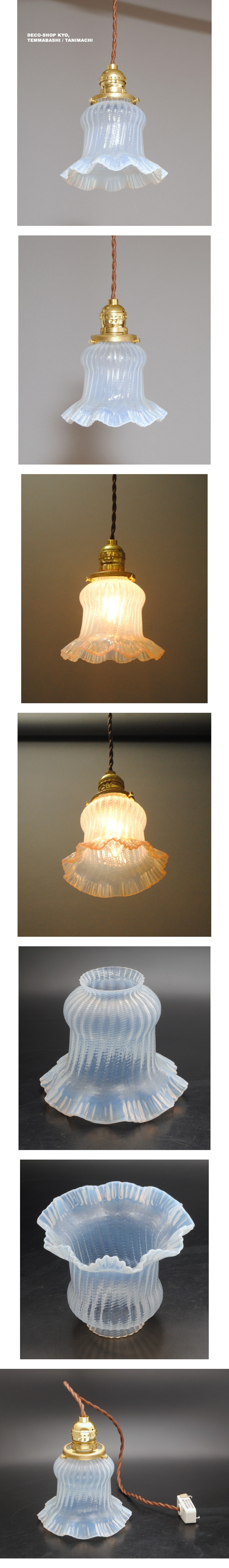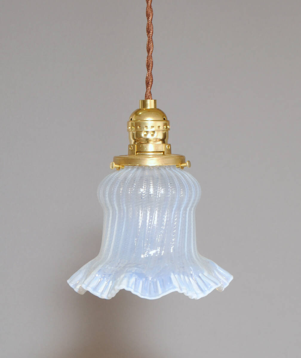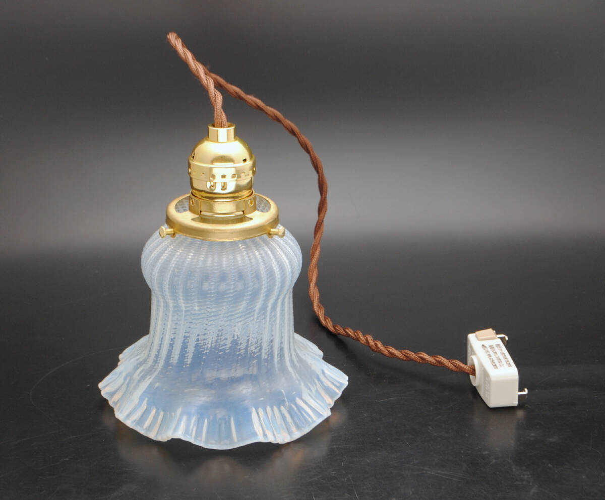 フランス・アールデコ期!!貴重,手吹きフリル造形・オパールセントガラスシェード!!コード,E26ソケット,引掛シーリング付き!!