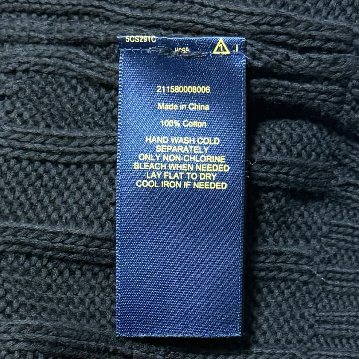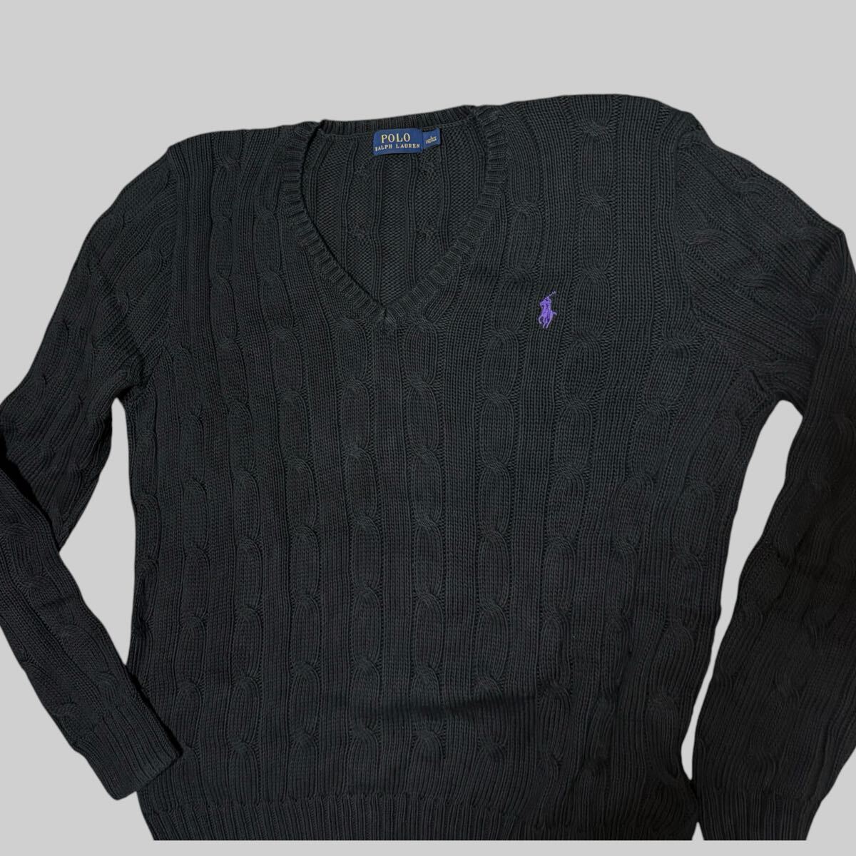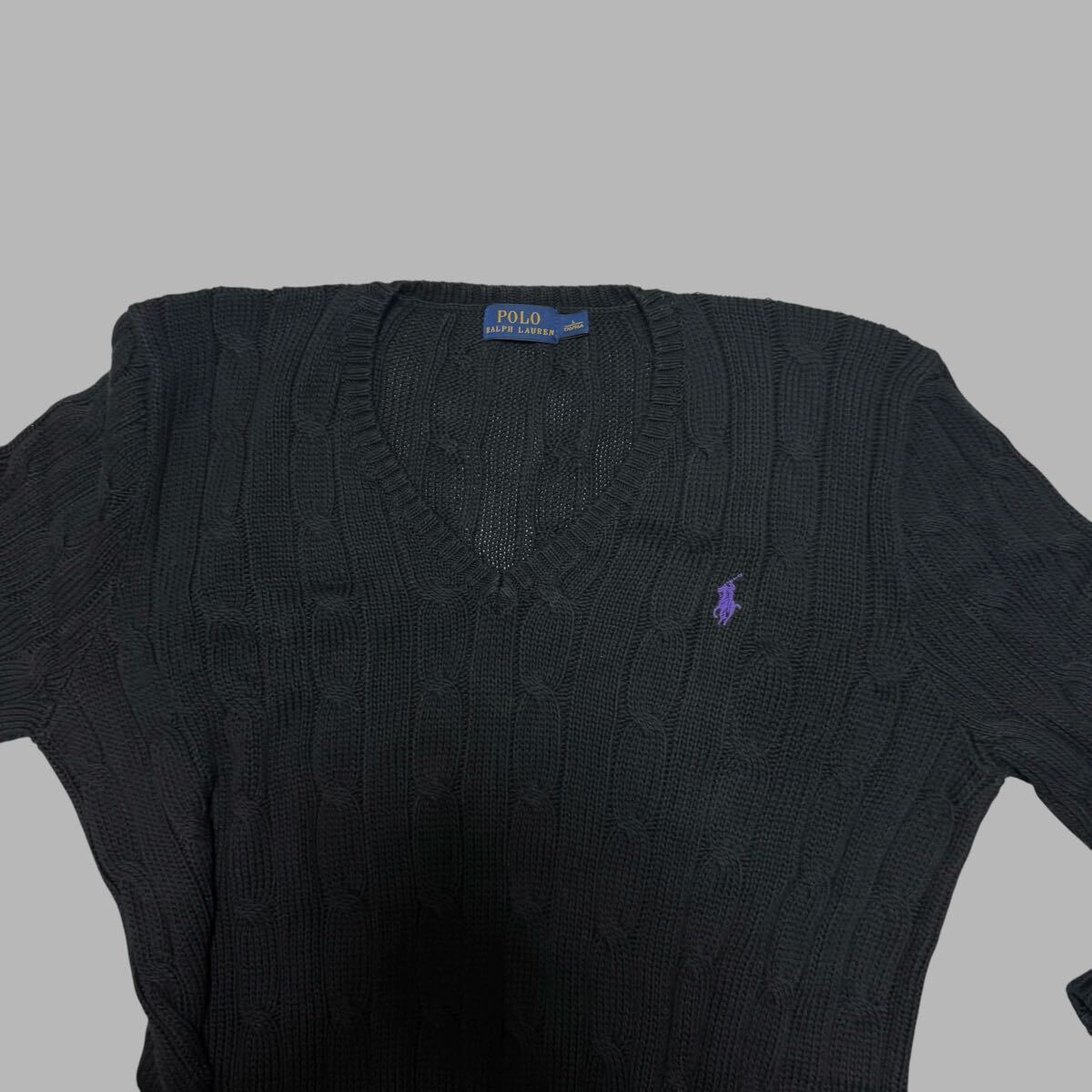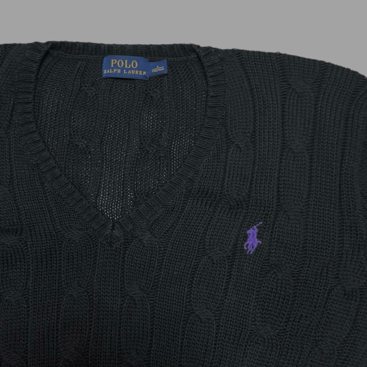 Polo Ralph Lauren ポロ ラルフローレン セーター ニット Vネック ケーブル編み ブラック 刺繍 ロゴ パープル 長袖 メンズ L