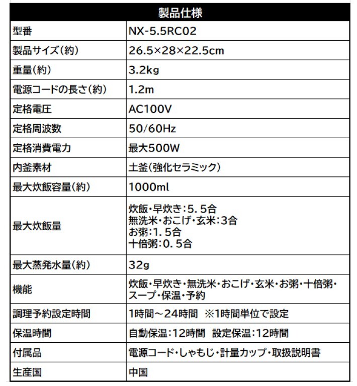 5.5合本格土鍋炊飯器NX-5.5RC02の出品です。