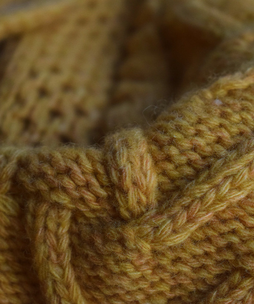アパデパのアランスタイルニットで組み合わせた編地は、ケーブル・ハニカム・シェブロン・モスステッチの4種類。