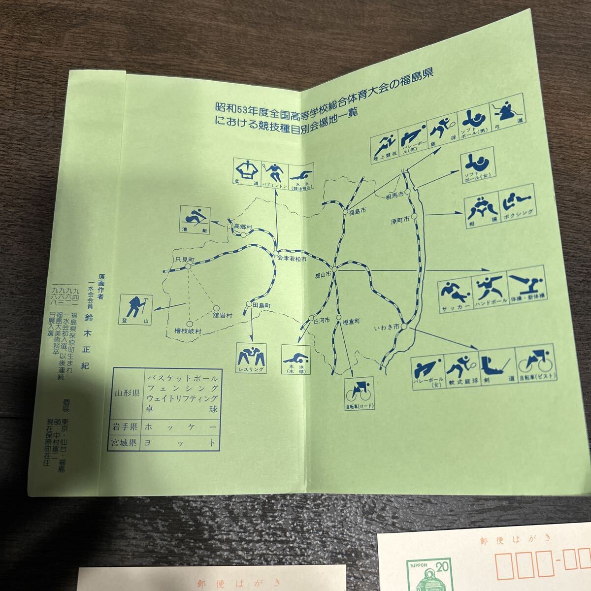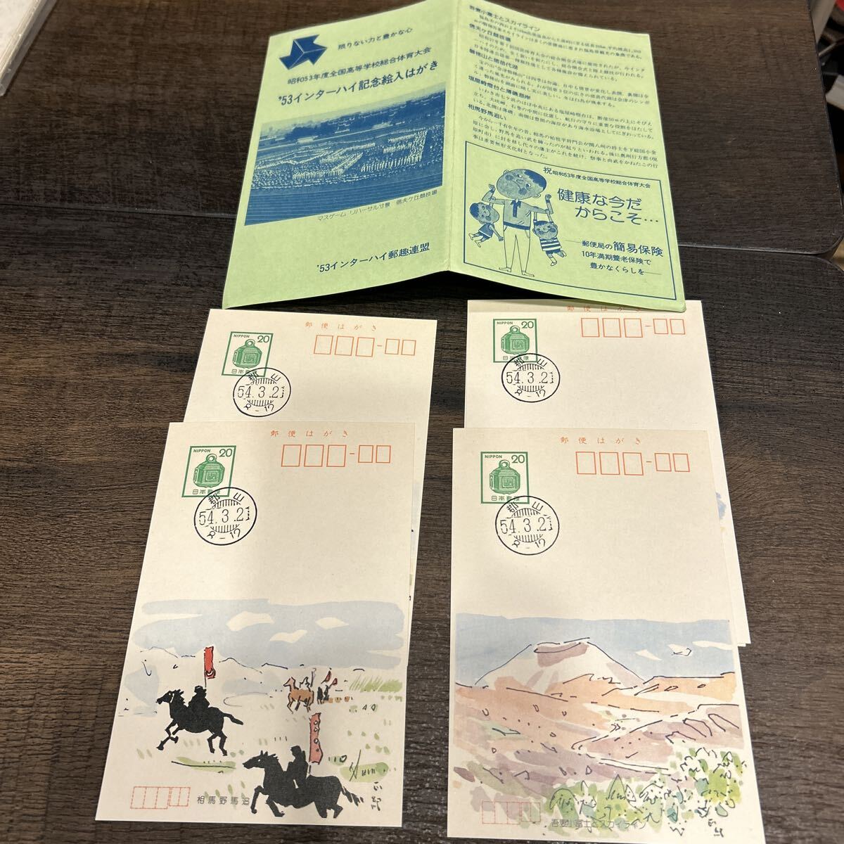 昭和53年インターハイ記念絵入はがき5枚セットです。同じはがきの違う記念印が押されている物がもう1セットありますので合計10枚です。54.3.21と記念印が押されています。古いもので自宅保管の為細かなところが気になる方はご遠慮ください。