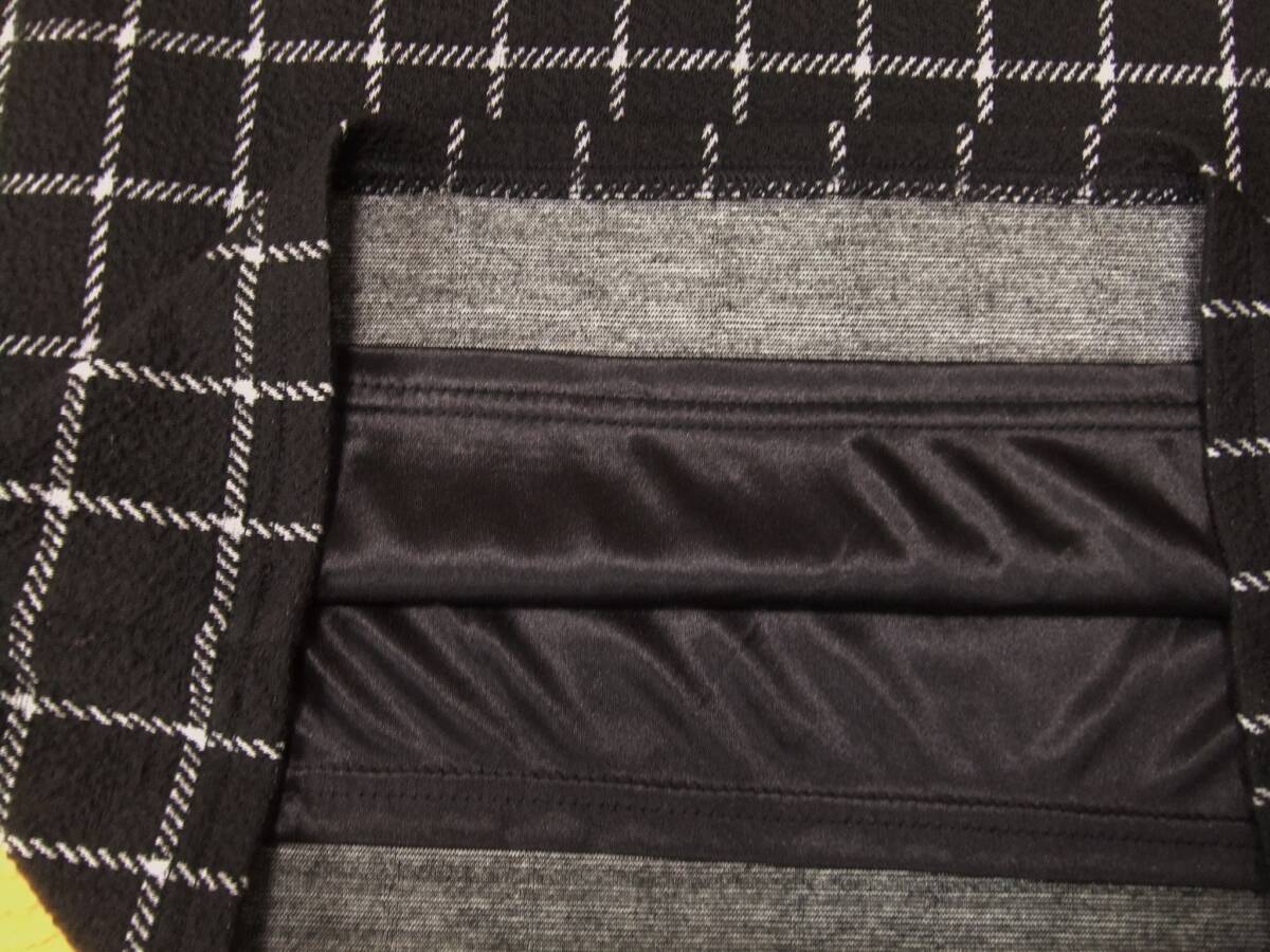 ウエストは総ゴムです。ゴム部分の幅は約5cmです。色は黒色です。格子模様が入っています。ポケットはありません。