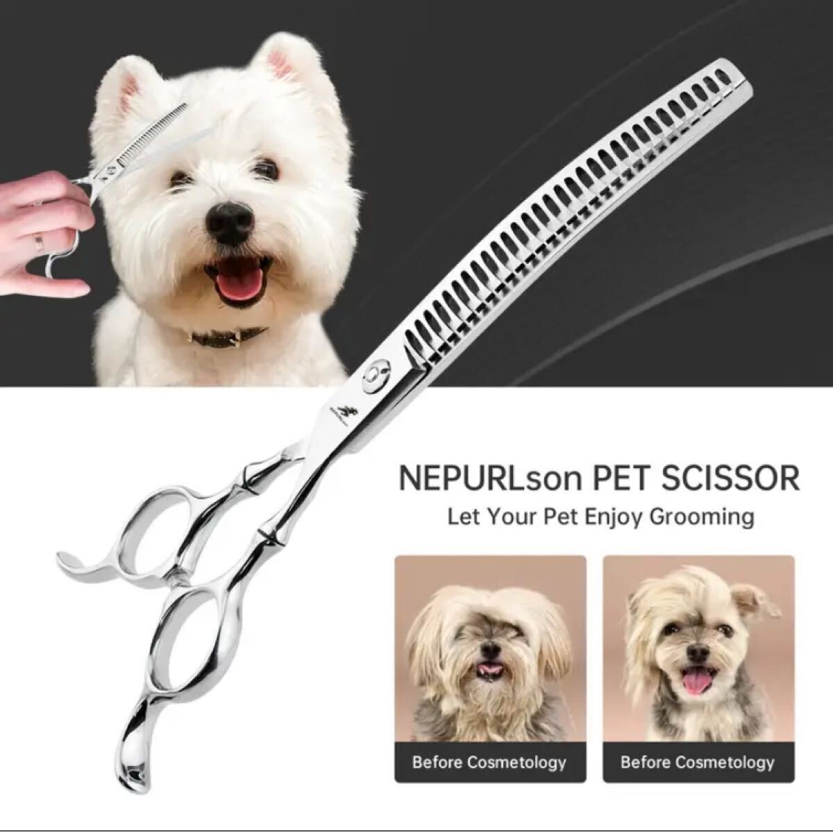 ペットハサミ トリミング用下向きカーブのブレンディングシザー またはブレンダーです。