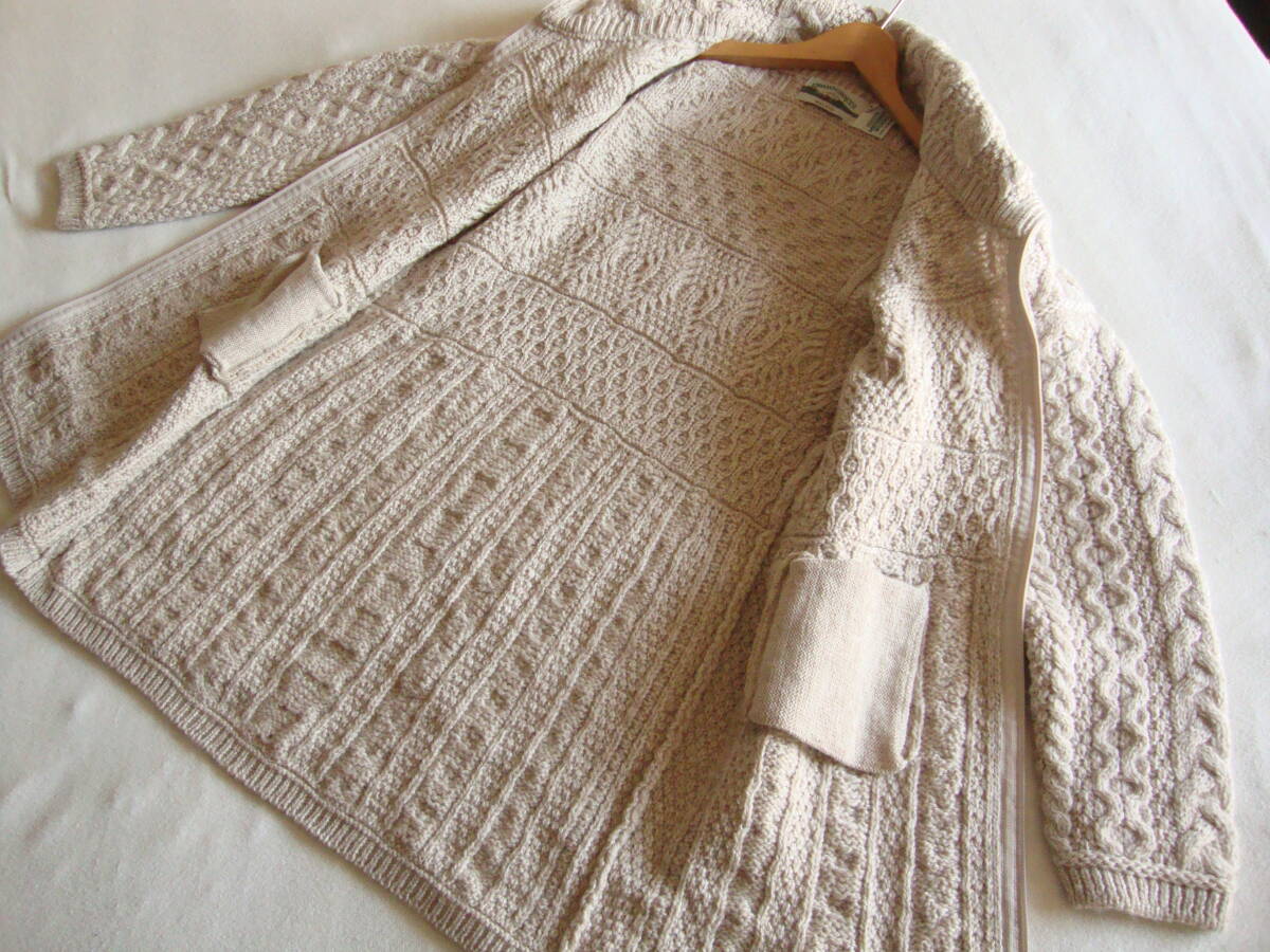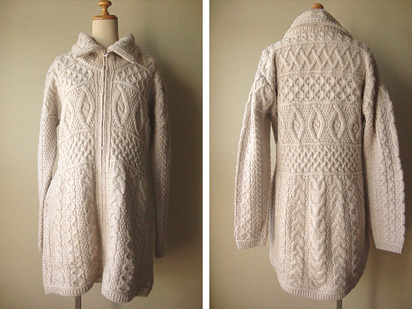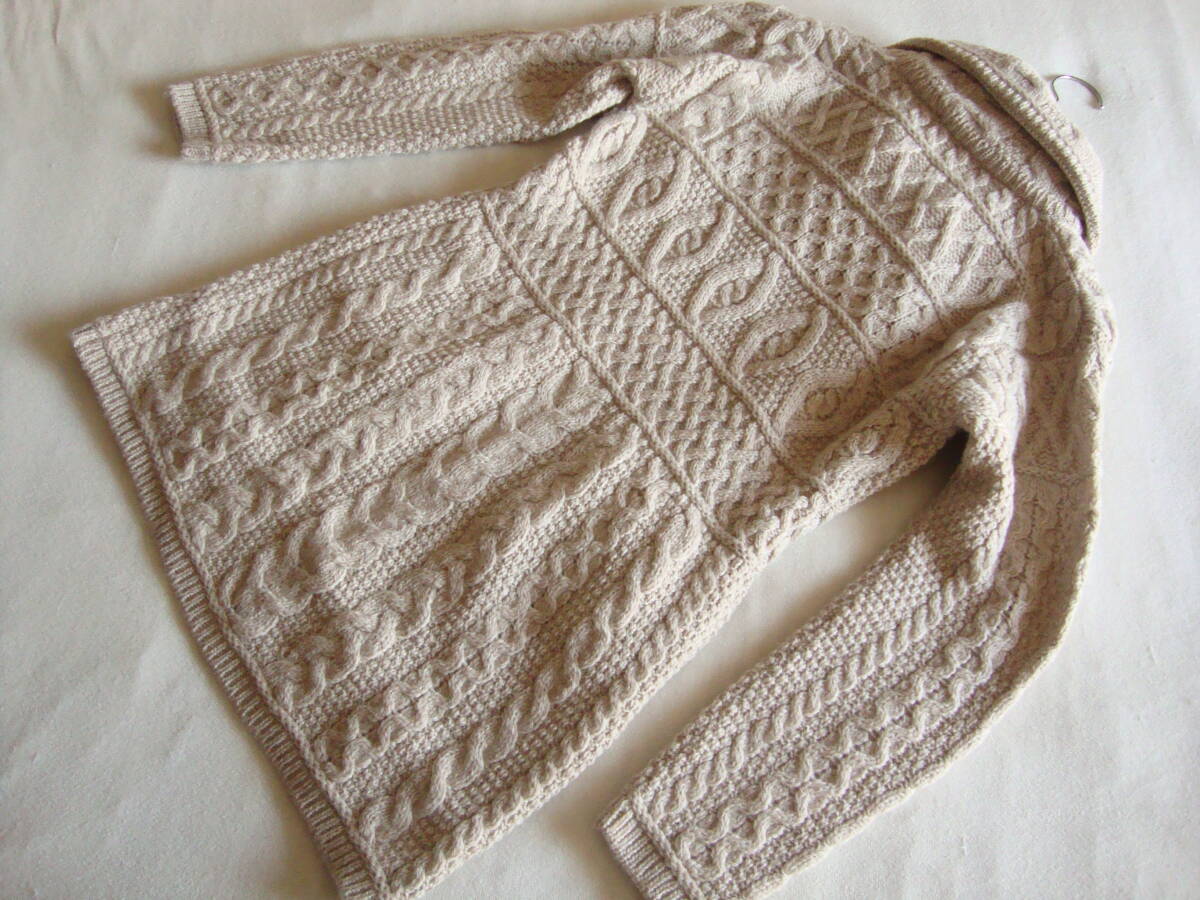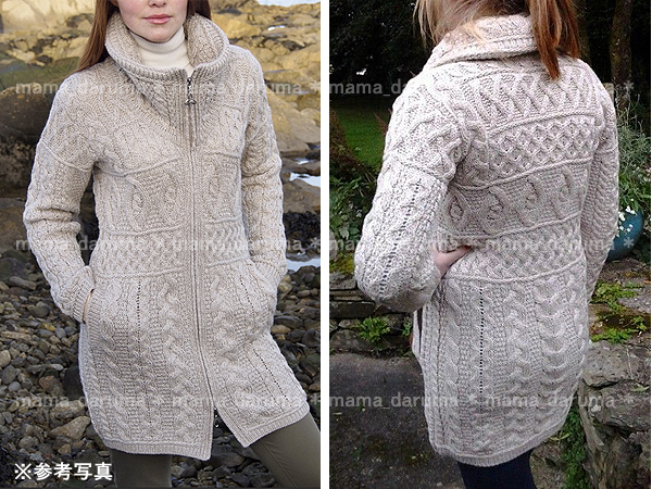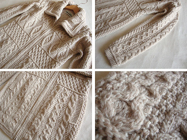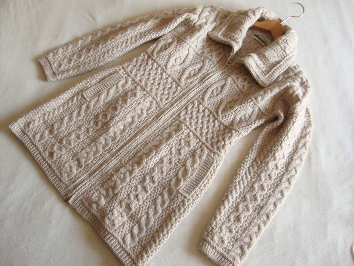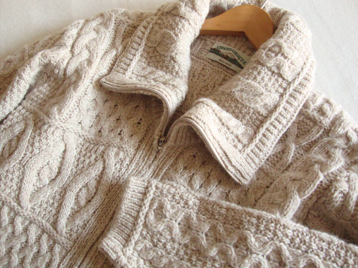 aran crafts アランクラフト 毛100% ケーブル編み フルジップ カーディガン M ベージュ アイルランド製 メリノウール ジャケット コート