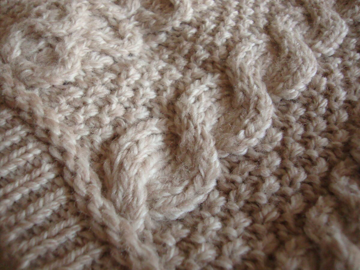 白っぽいベージュと少し赤みがるベージュが1本になったミックス毛糸で編まれています。