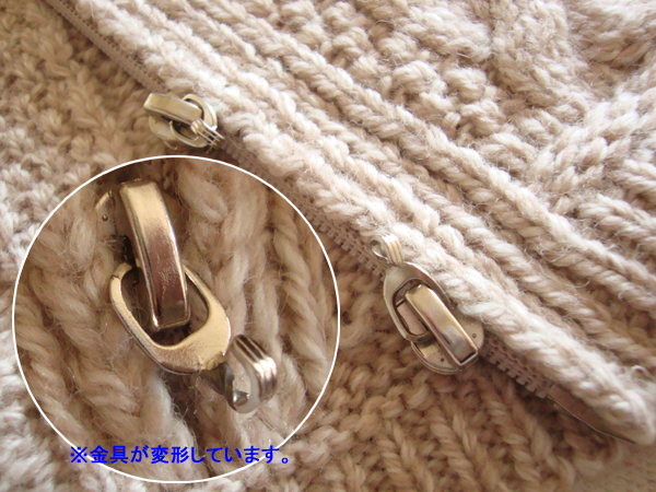 本来、ファスナーの先にチャーム(金具)が付いていたと思われますが、欠品しています。(写真参照)