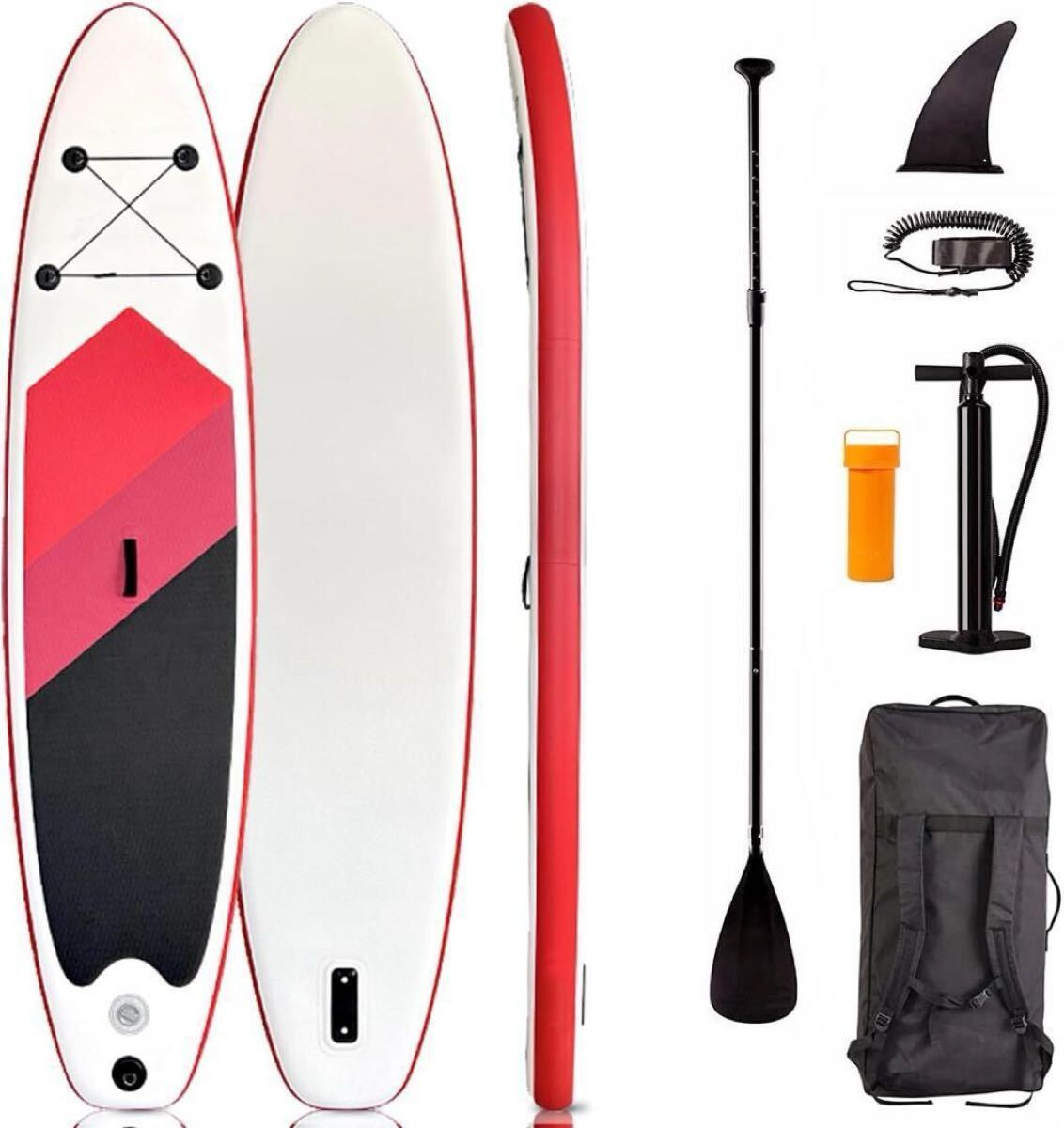 パドルボード本体×1、ハンドポンプ×1、アルミパドル×1、収納バックパック×1、安全フットロープ×1、フィン×1、メンテナンスキット×1、日本語取扱説明書×1