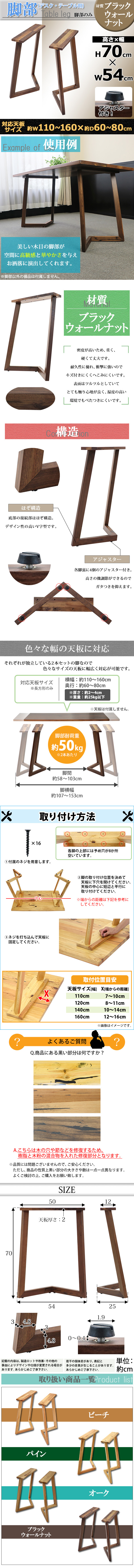 | 商品名 | 送料無料 テーブル デスク 脚 脚のみ 2本セット パーツ DIY ブラックウォールナット材 W54×D25×H70cm ブラックウォールナット V字 高級 木製 木材 天然木 無垢材 アジャスター付き クルミ ダイニングテーブル おしゃれ レッグ テーブル脚 2脚 自作 家具 lvbkwaleg |