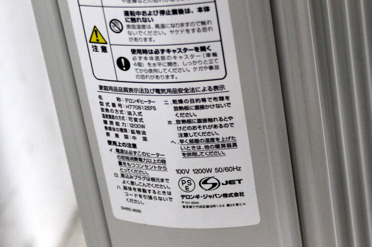 | ▼商品名 | [美品(動作OK)] DeLonghi デロンギ・オイルヒーター H770812EFS |