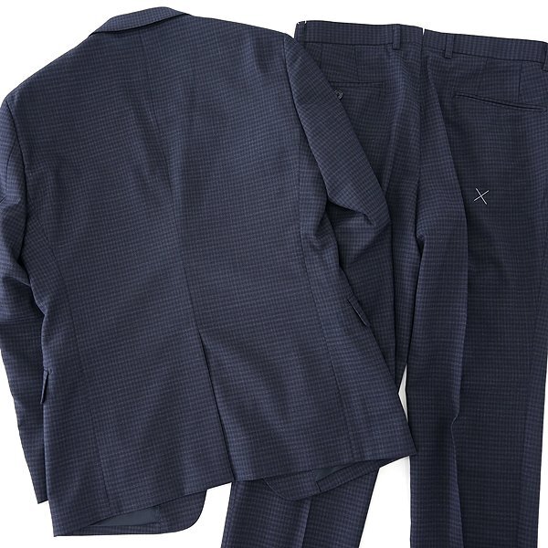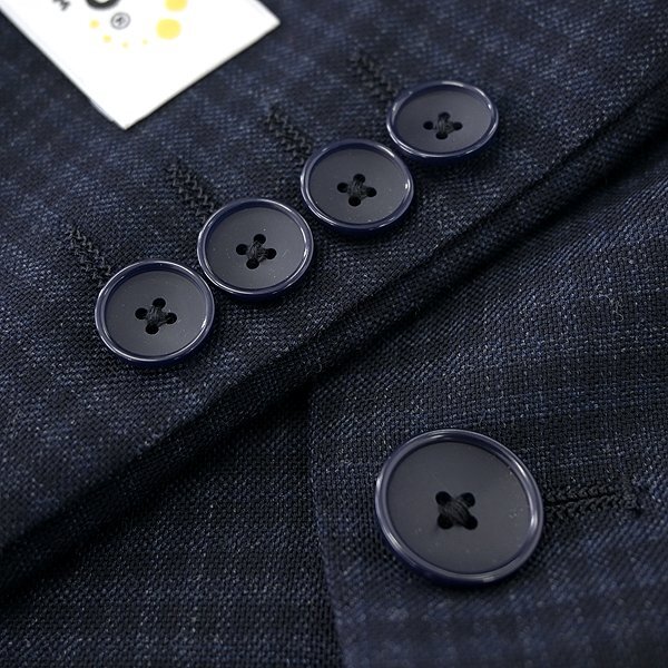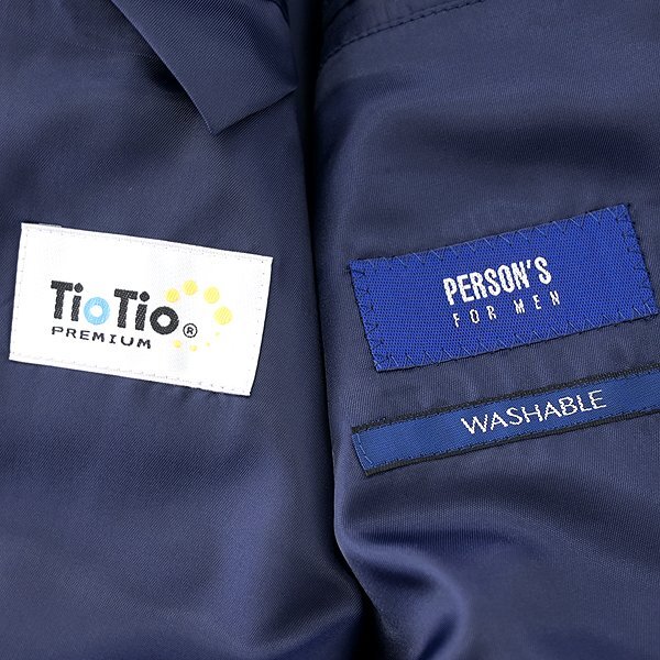 A7(普通体型のXLサイズ相当) 胸囲96 胴囲84 身長180 ※商品に記載されたサイズ・寸法です※ 【ジャケット】 肩幅45cm 身幅53cm 袖丈63.5cm 着丈74cm 【スラックス】 ウエスト86cm(内回り1周) 股上26cm 股下95.5cm 裾幅19cm 腿幅29cm(股下10cm部分) 【上衣】 表地:毛50% ポリエステル50% 胴裏:ポリエステル100% 袖裏:ポリエステル100% 【下衣】 表地:毛67% ポリエステル33% 膝裏:ポリエステル100% ネイビー系 |