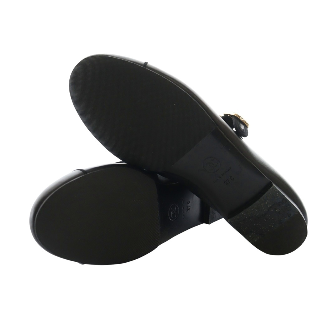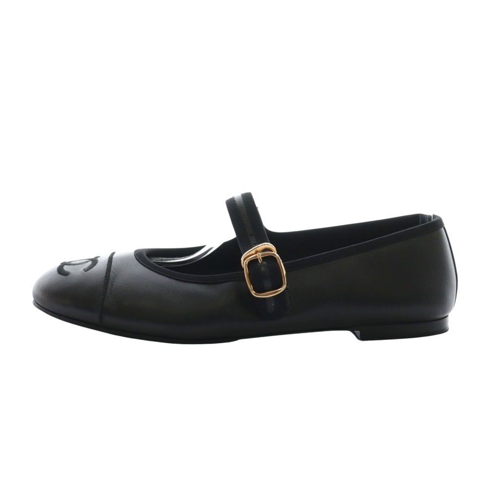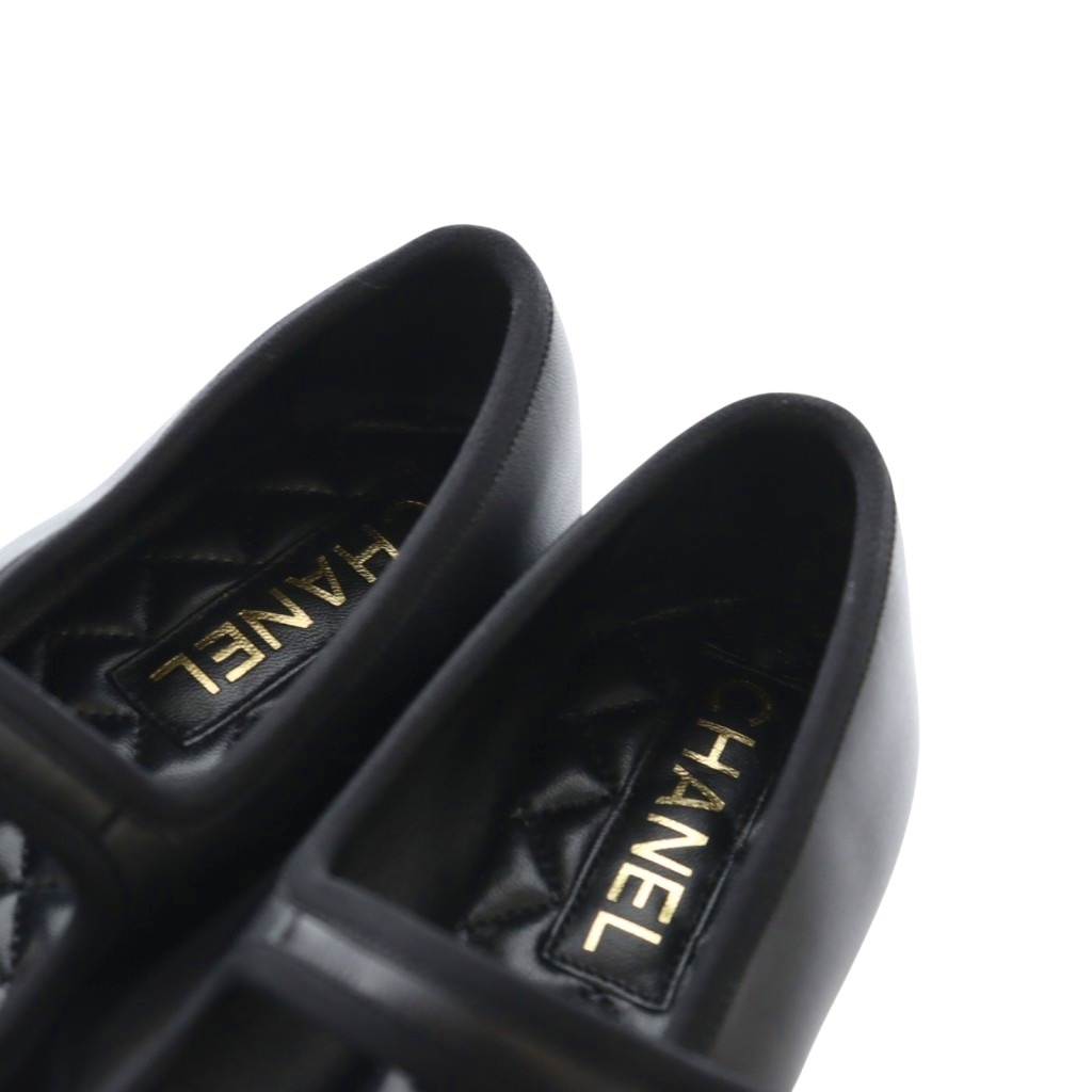 シャネル CHANEL メリージェーン フラットシューズ パンプス ラムスキン ココマーク 37 24.0cm 黒 ブラック G45503 /AQ ■OS